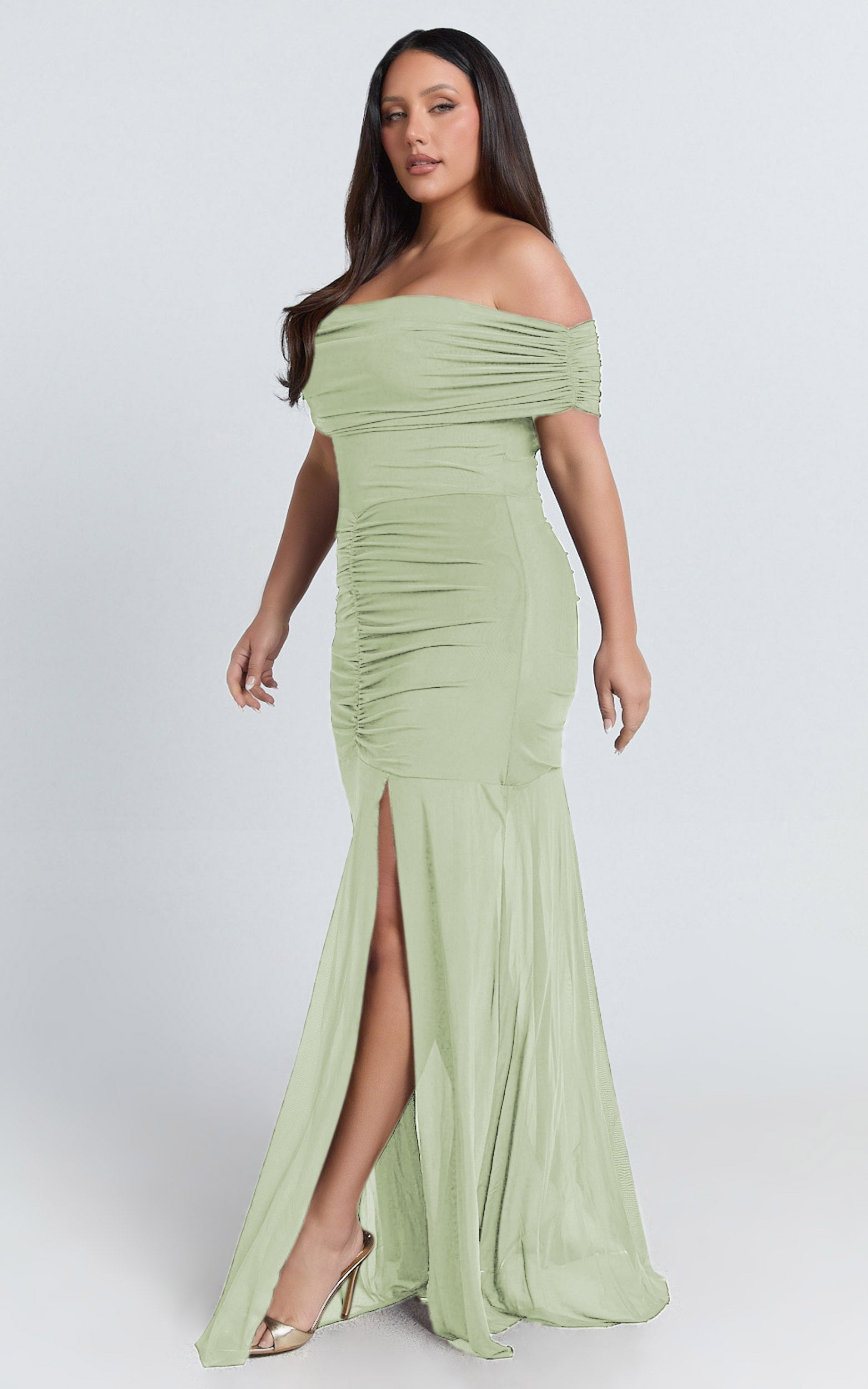 Alanna Maxi Dress levels up every RSVP with its off-shoulder neckline and figure-loving ruching that smooths, shapes, and photographs like a dream. Style with metal-rimmed sunglasses by day and a mini hobo bag after dark for effortless polish, or lean into summer boho with pendant necklaces and raffia bags. Sage is the chic twist on Green you’ll reach for again and again, timeless, flirty, and made to turn heads.