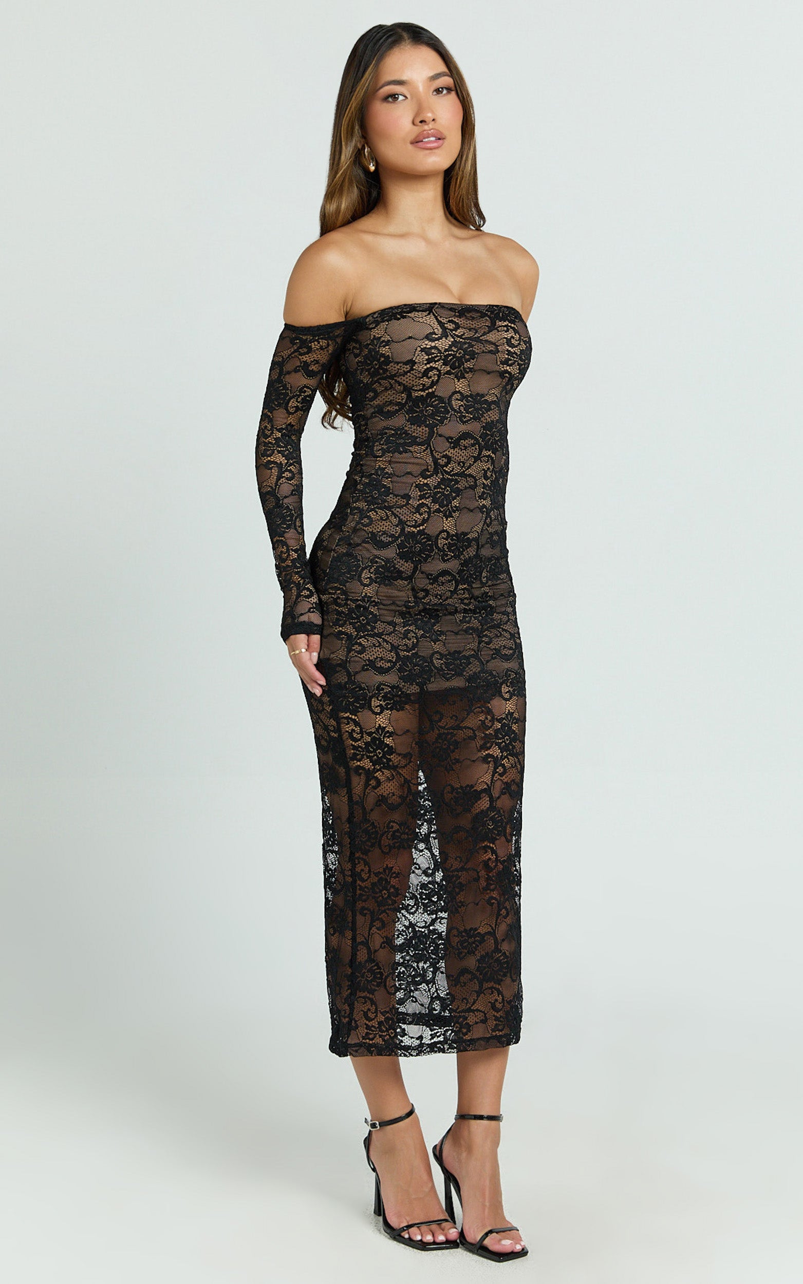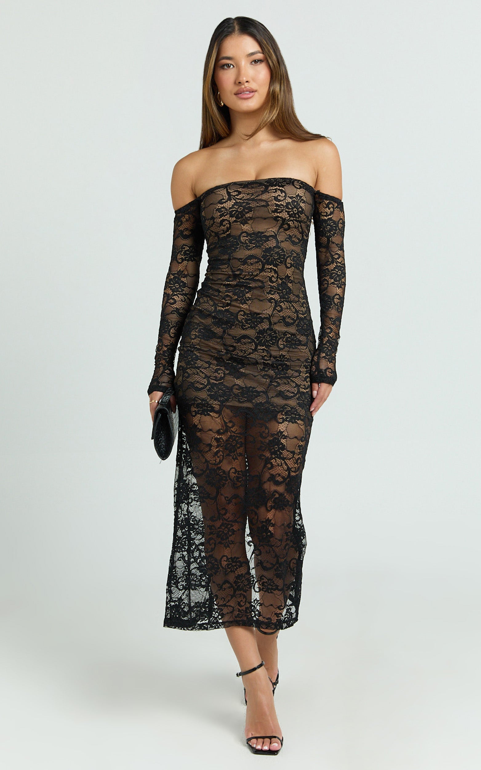 This black midi brings understated allure with a fitted skirt and long sleeves, serving that Quiet luxury vibe while staying effortlessly wearable across your Dresses rotation. Style with strappy heels and a mini top-handle to lean into Minimalist fashion, or add statement earrings for a little extra glow-up.
