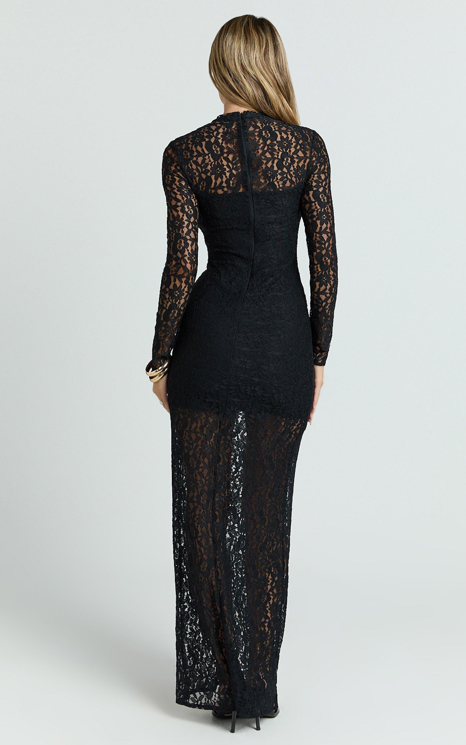 Meet Andrea Maxi Dress, your go-to for elevated occasion dressing with maximum impact and minimal effort. Style it with strappy heels and a compact clutch for a clean, minimalist finish, or add bold earrings and a slick bun to let the neckline shine. Search-worthy keywords: Dresses, black maxi dress, lace dress, long sleeve dress, evening dress.