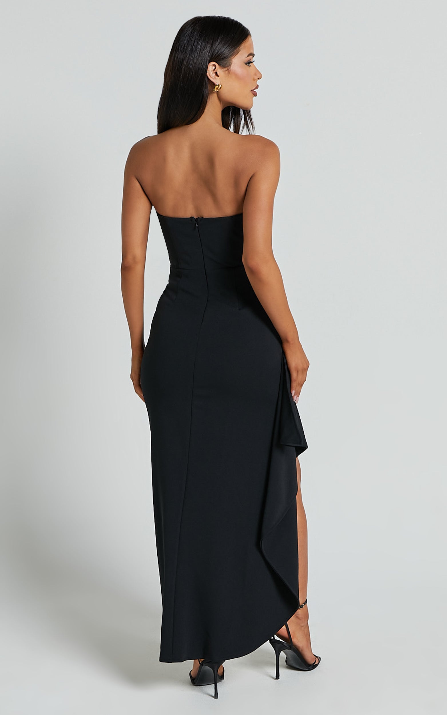 Make a statement at your next party night with the Andrea Midi Dress. This strapless ruffle dress in black is perfect for those who want to stand out from the crowd. Crafted from heavy weight polyester, this slip dress not only looks stunning but feels incredibly comfortable as well. With its elegant midi length and flattering silhouette, this dress is ideal for both formal occasions and cocktail parties. Embrace your individuality and rock this strapless beauty with confidence!
