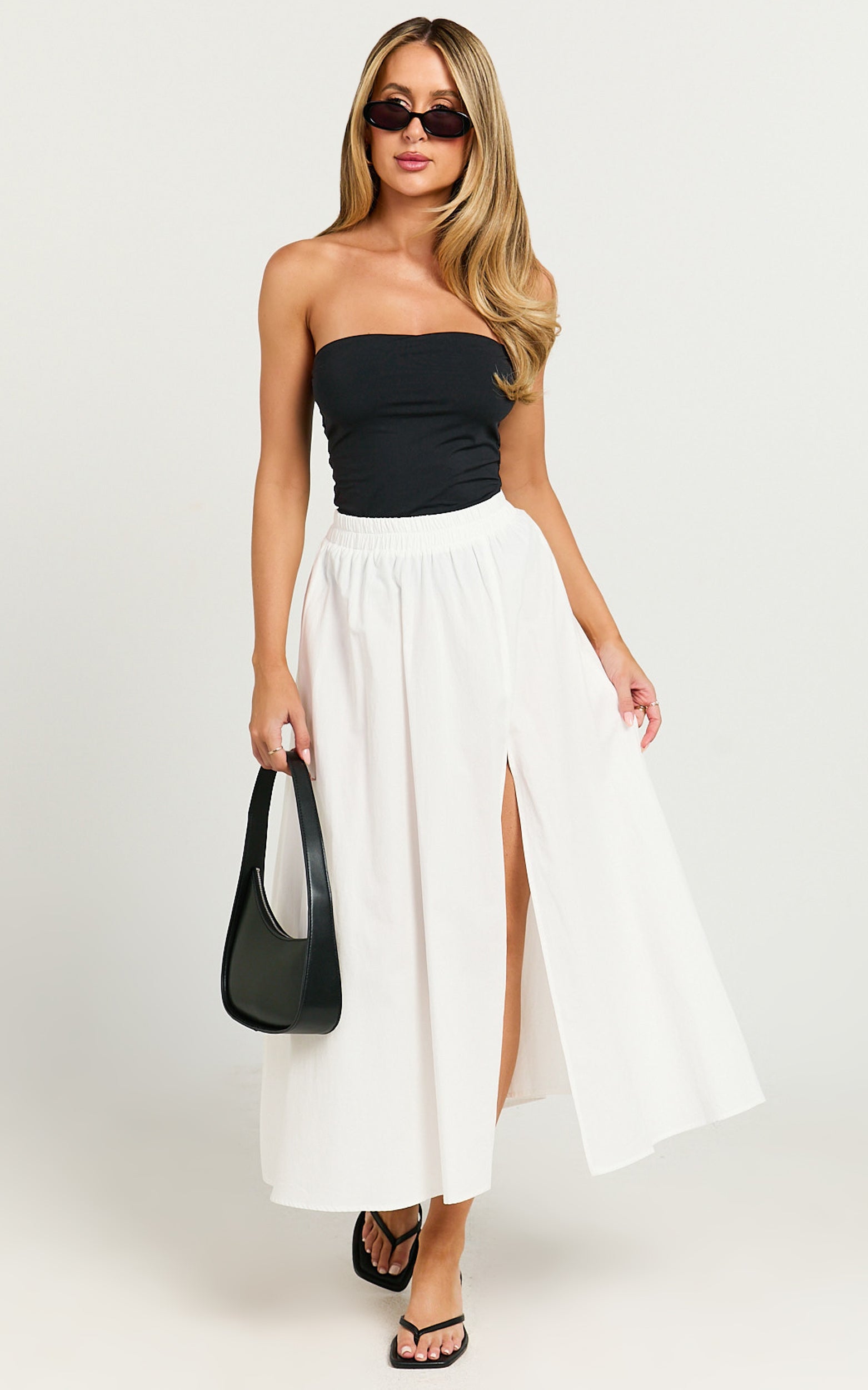 Dress it up or down, the white hue pairs perfectly with any top in your closet. Don't miss out on adding this must-have piece to your collection of skirts!'
