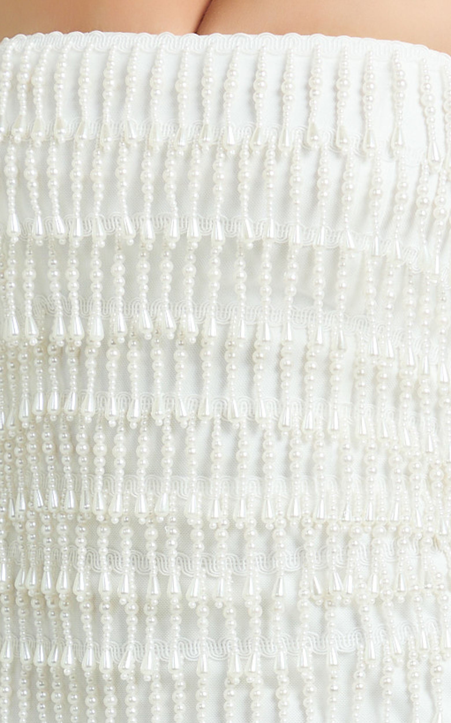Aria Mini Dress taps into the Fringe trend while nodding to High Shine energy, giving you that luxe finish without the fuss. The ivory hue keeps it chic and versatile for celebrations, hens, and nights out. Pair with minimalist heels and a petite clutch to let the pearl details do the talking. Dresses like this are made for compliments.