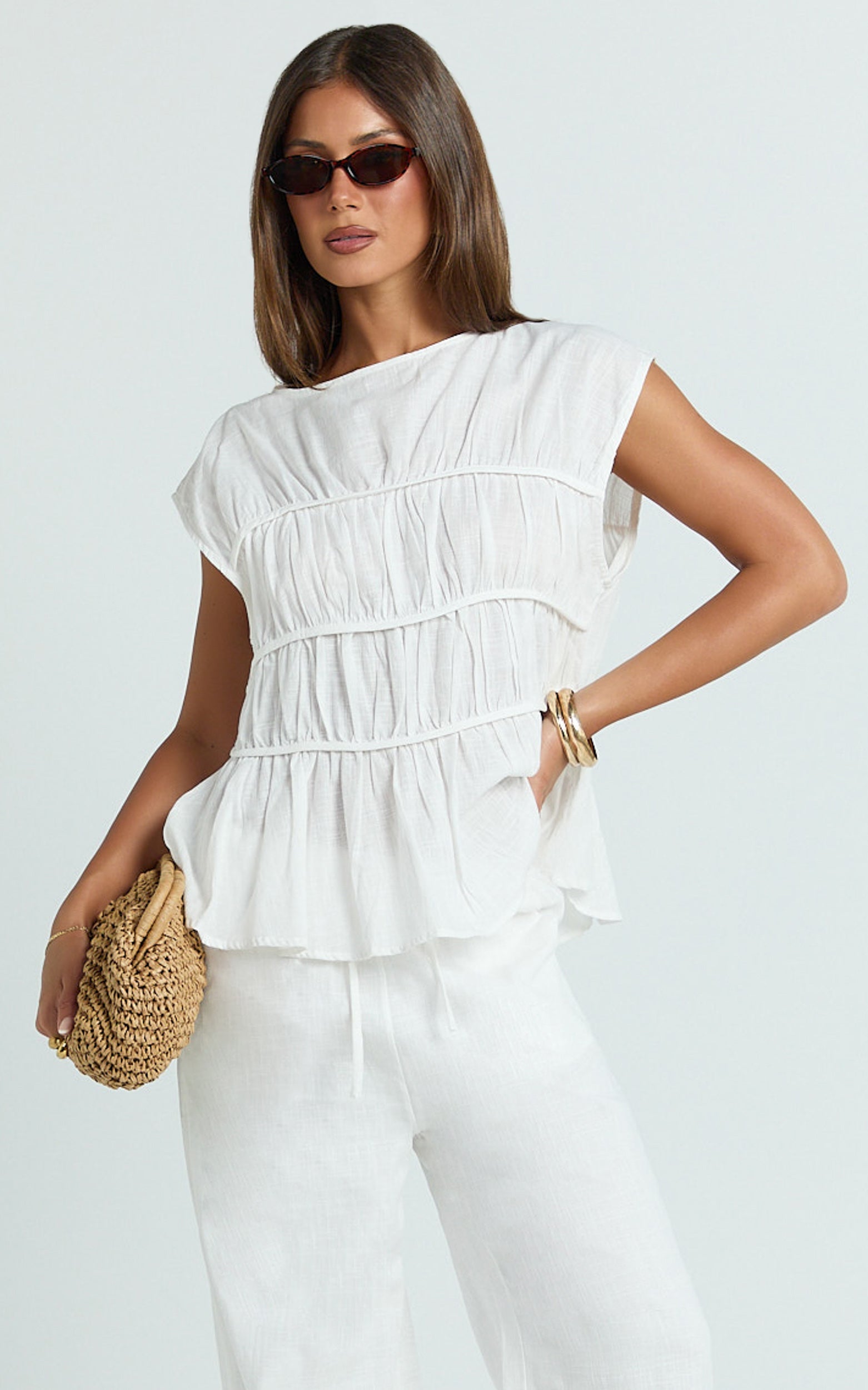 The Auric Two Piece Set in Cream is effortless polish in outfit form. The ruched top frames your shape beautifully, while the wide-leg pants fall with that relaxed, Minimalist-Chic drape that feels very quiet luxury. Wear the full set for a sleek co-ord moment or break it up - each piece is strong enough to style on its own. Auric nails the neutral trend with soft texture, clean lines, and a fluid silhouette that flatters from every angle. Style the top with heels and a mini bag for dinner plans, then switch to sandals and gold hoops for a daytime vibe. The pants pair perfectly with a fitted tank or cropped tee when you want easy weekend energy. If you’re into elevated basics that work overtime in your wardrobe, this cream set is one you’ll mix and match over and over again.