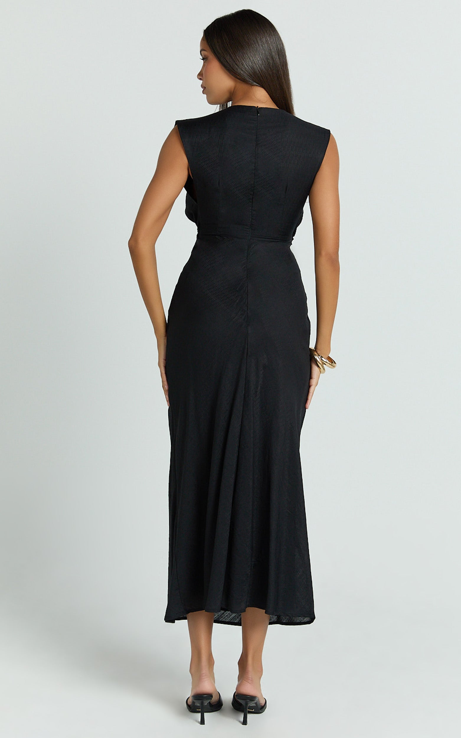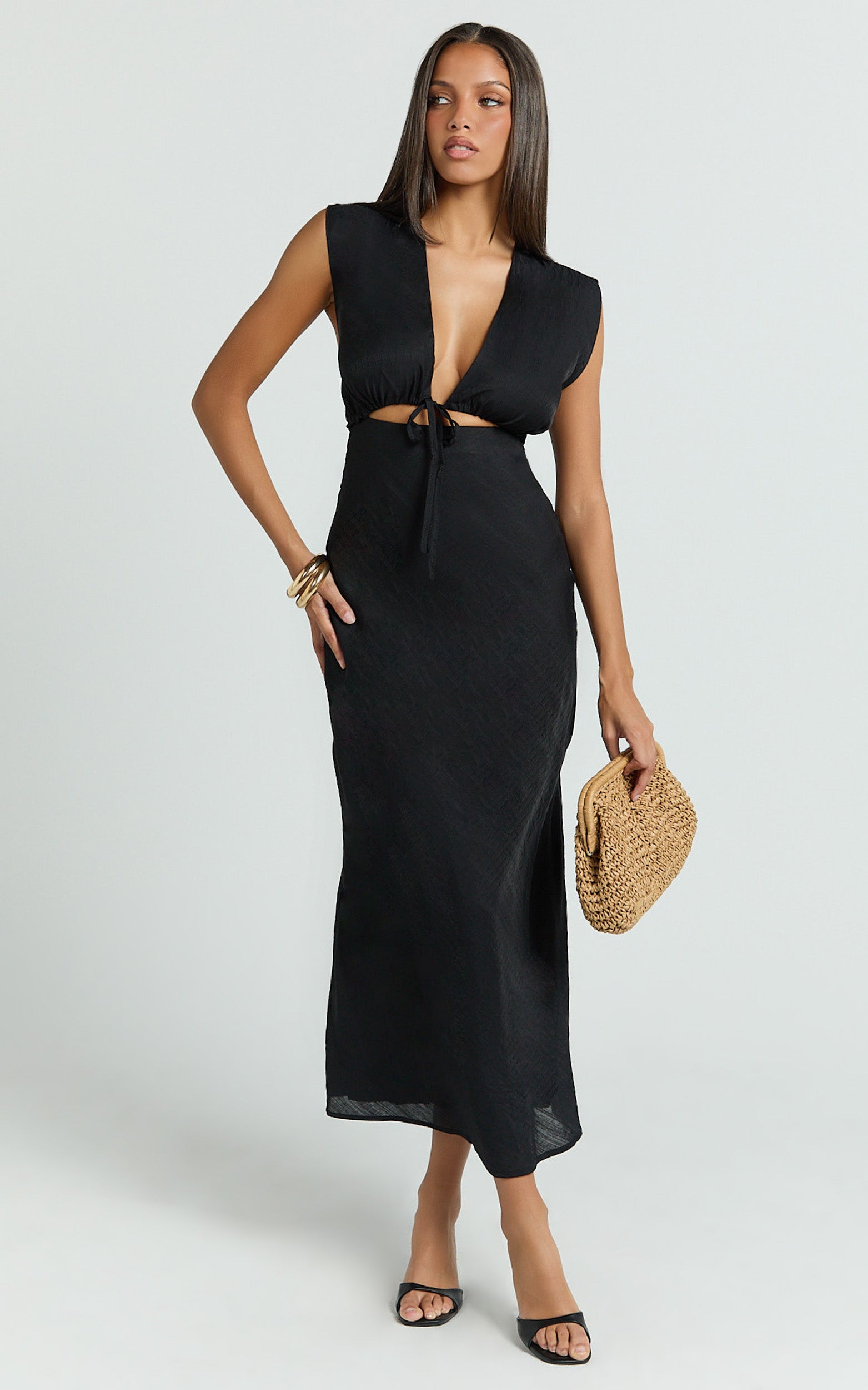 Beatrice Midi Dress brings drama with an easy slip-on vibe and a hem that hits just right for movement and impact. The tie detail lets you customise the fit, while the plunge and cut-out balance sultry and sophisticated. Add a Bracelet Bag and call it a look, this is the little black dress upgrade your wardrobe’s been waiting for.