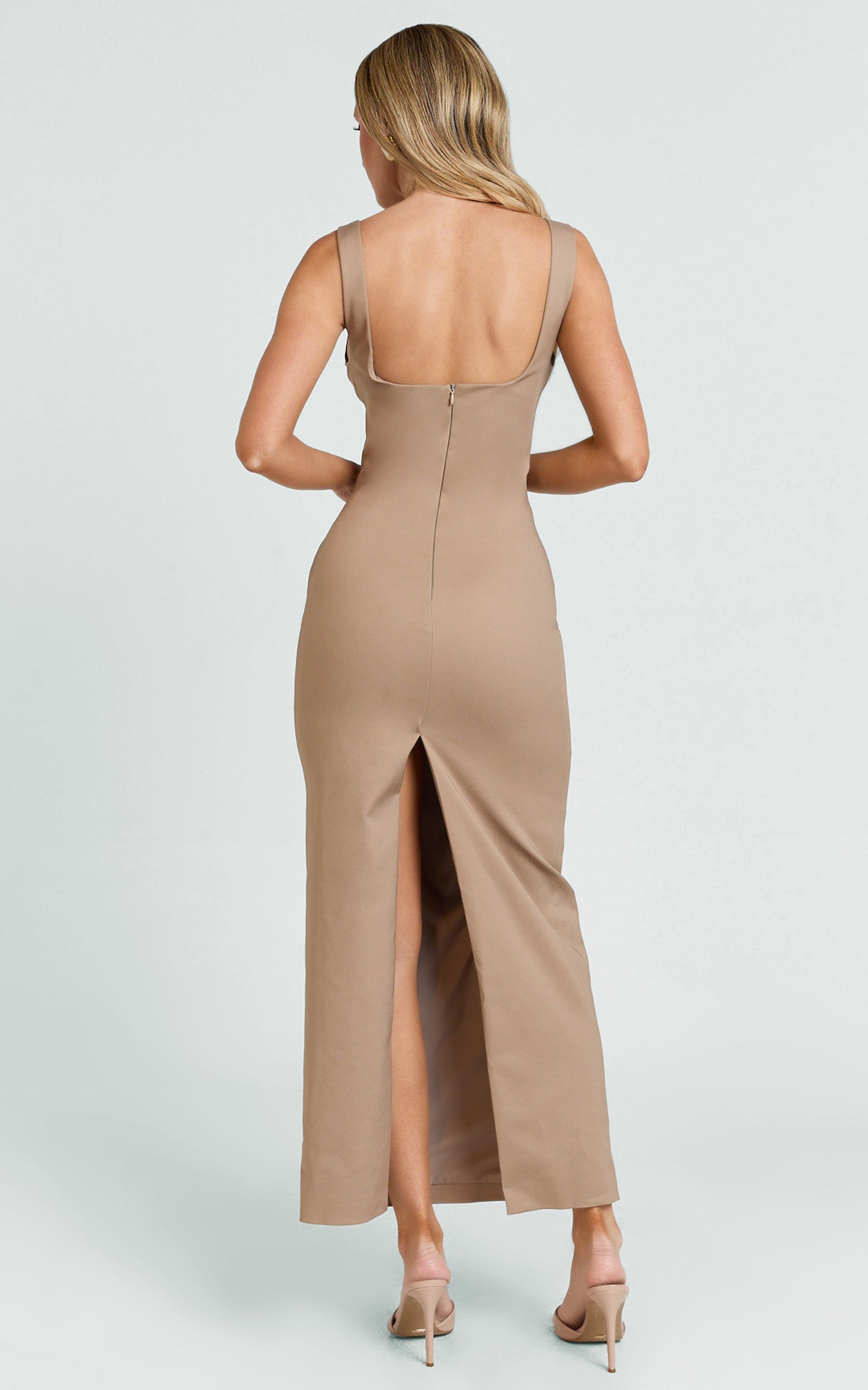 This fitted midi showcases a scoop neckline and all-over ruching that smooths, snatches, and celebrates your shape, perfect for desk-to-dinner, date nights, and everything after. The rich brown finish taps into Dark Brown Hues, giving your Dresses rotation that luxe-neutral energy you’ll wear on repeat.