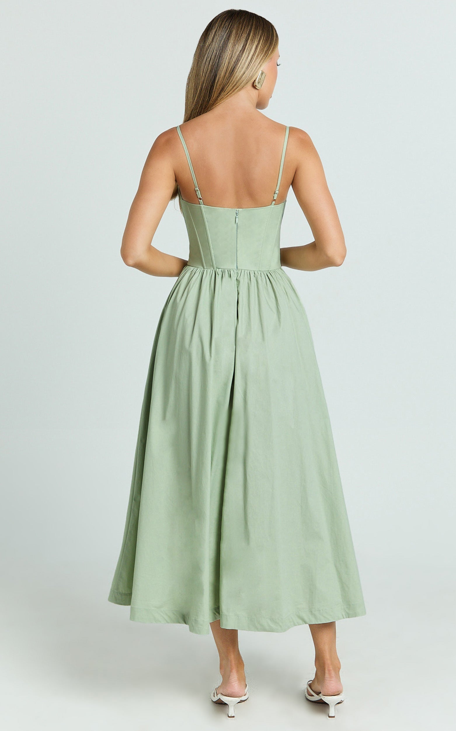 This scoop-neck flare midi brings easy polish with a swishy skirt that moves when you do and a fitted bodice that flatters from brunch to dance floor. Soft green tones tap into the Dresses trend cycle while the silhouette nails that clean-girl vibe, giving you a go-to piece that’s equal parts cute and effortless.