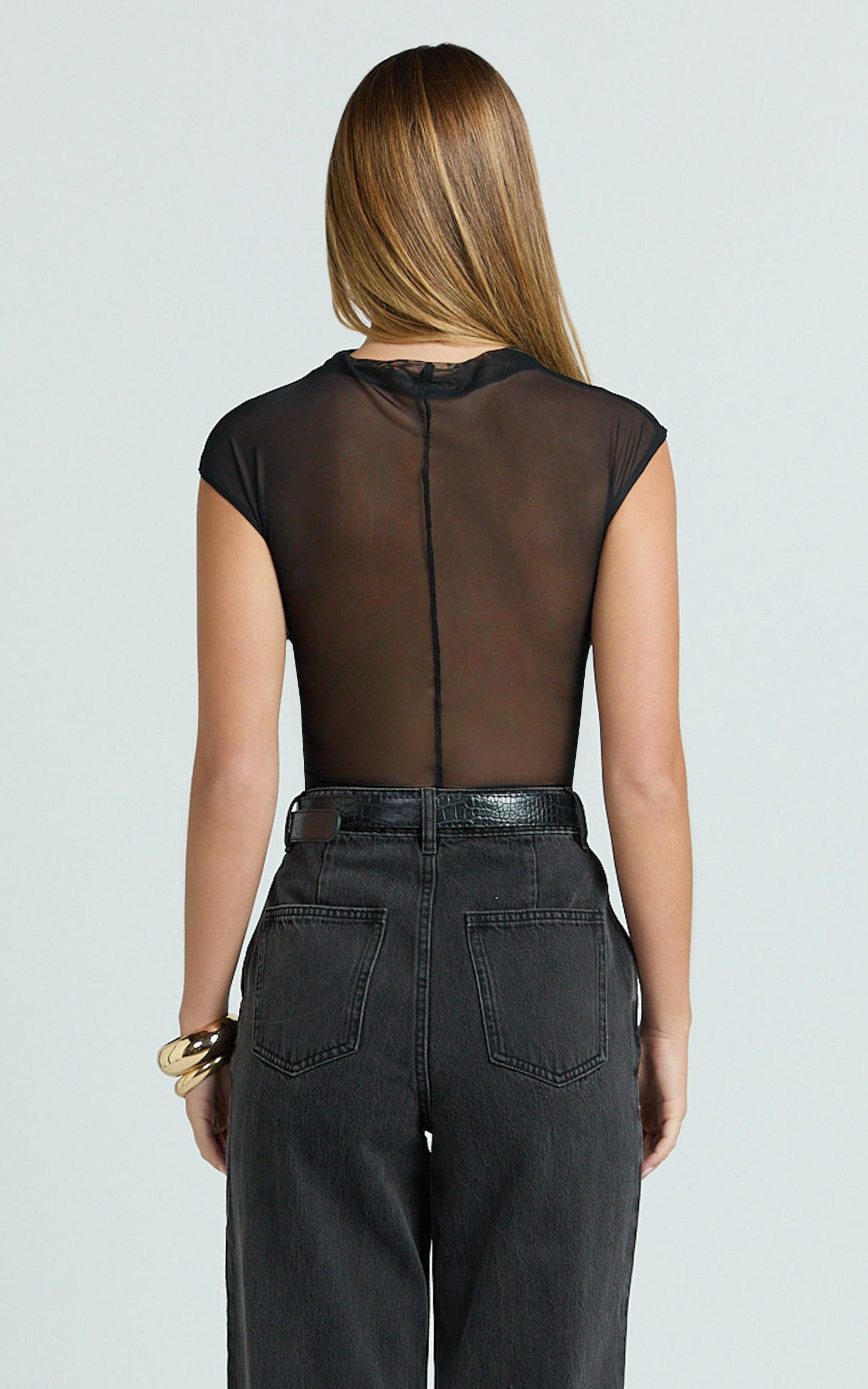 The Brayden Bodysuit in Black is sleek, fitted, and ready for anything. The high neck and cap sleeves keep the lines clean under blazers or denim, while the sheer finish adds that subtle, sultry edge - think modern leotard vibes with just the right amount of coverage. Made for easy styling, it pairs perfectly with tailoring for a polished moment or relaxed denim for off-duty cool. Dress it up with a pendant necklace to highlight the neckline, or keep it minimal and let the silhouette do the talking. Effortless to tuck, zero bulk, and maximum impact - this bodysuit is your new go-to base layer for every look.