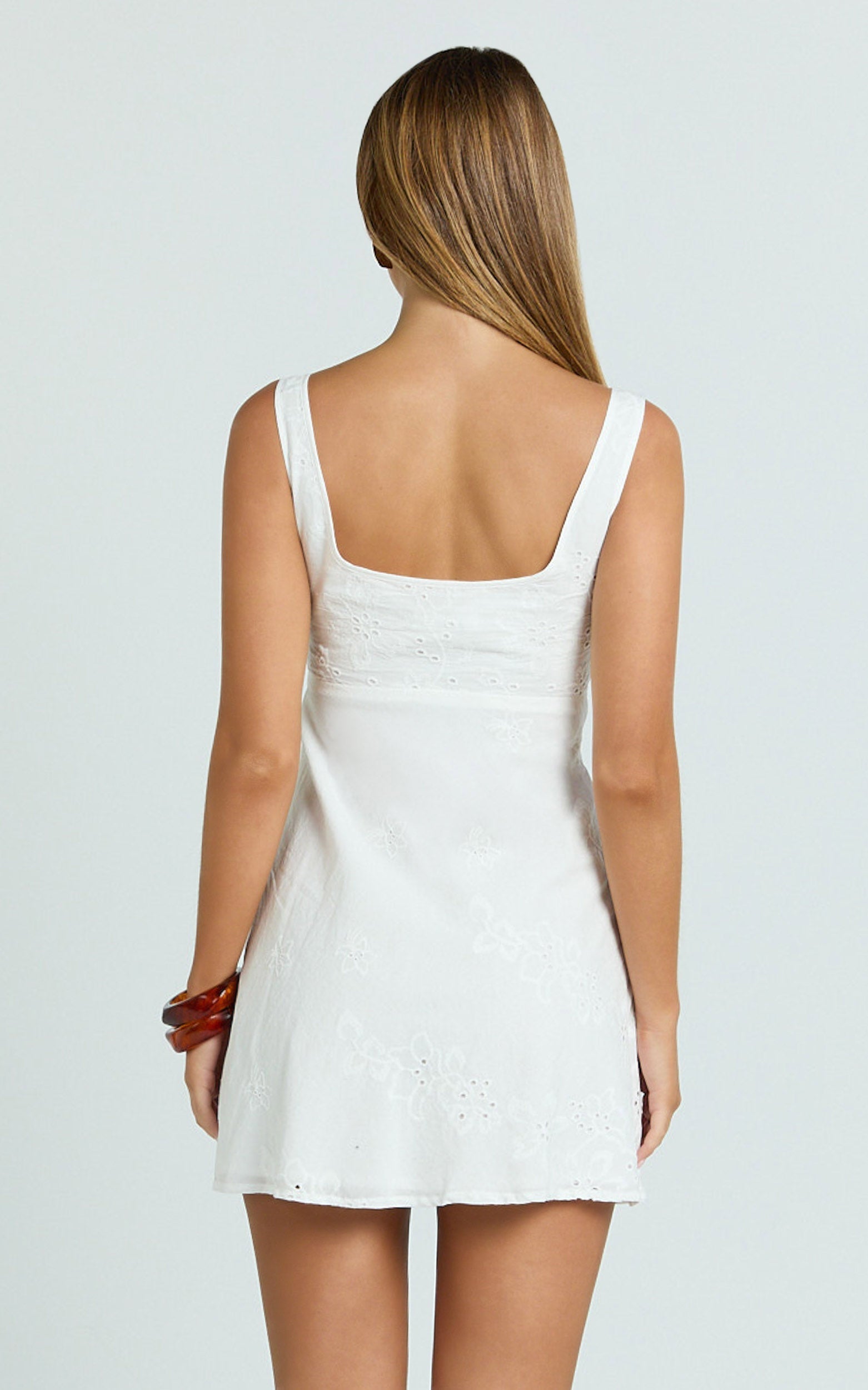 This embroidered sweetheart A-line mini flatters with a nipped waist and swishy hem that moves with you, perfect for Summer whites moments and those Breezy dresses vibes. Think garden parties, long lunches, and every “what do I wear?” invite.