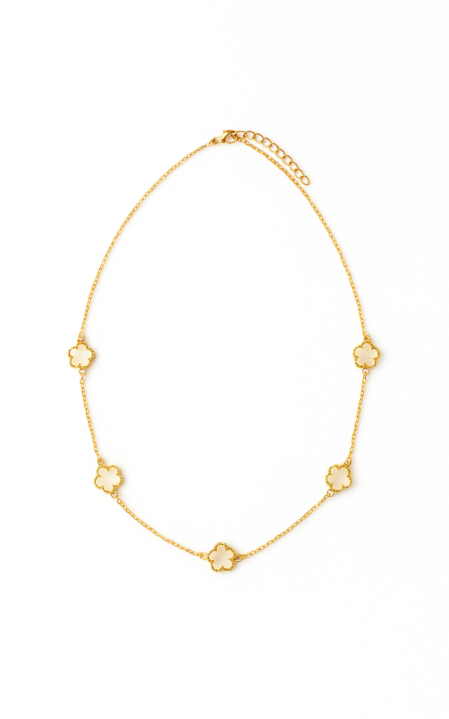 The Britt Multi Clover Pendant Necklace In Gold brings playful elegance to your lineup with its multi-charm detail and glossy finish. Dress it up with sheer statements and oversized sunglasses for chic day plans, or keep it minimal and fresh for daily wear. Consider it your new wear-on-repeat piece, effortless, versatile, and totally outfit-elevating.