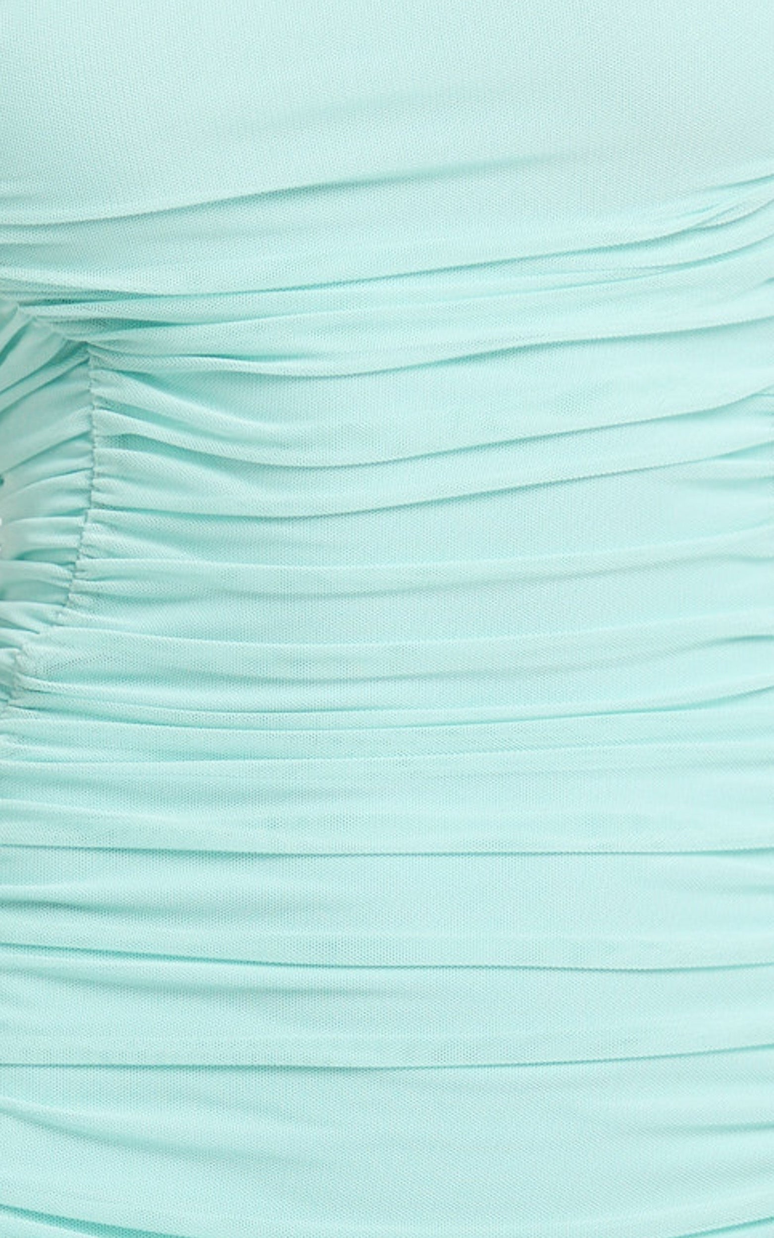 Cardi Maxi Dress - Ruched Mesh High Leg Split Dress In Mint turns heads in a fresh green hue that pops in photos and IRL. Lean into the trend curve with subtle bowcore glam and a touch of metallics in your accessories to elevate the vibe. Slip on strappy heels and a tiny clutch to keep it sleek, this is your go-to for cocktails, weddings, and any RSVP where you want all eyes on you.