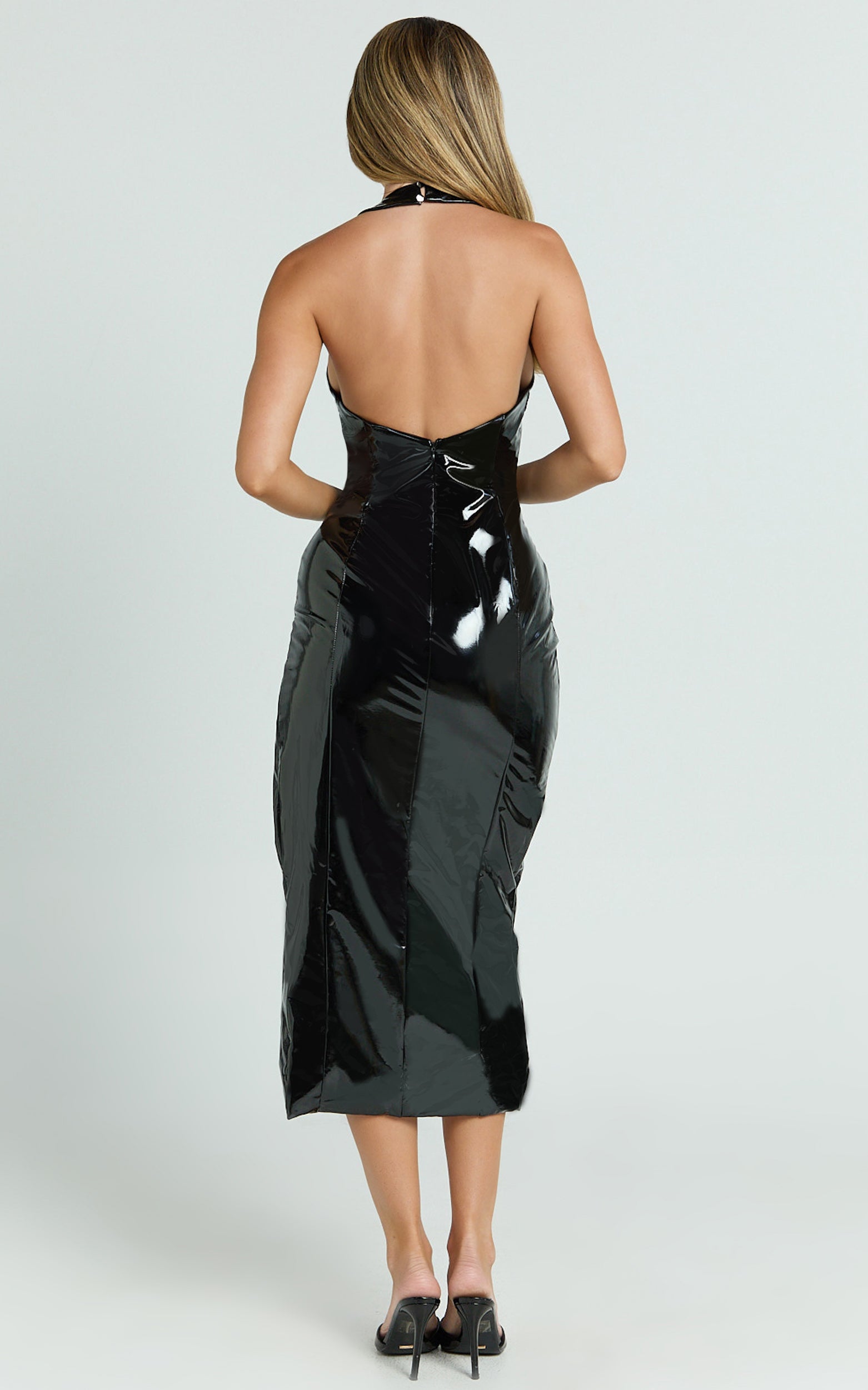 Make a statement in the Carey Midi Dress – the ultimate showstopper that blends classic allure with modern edge. This isn't just any black dress; it's a testament to the bold spirit of the woman who wears it. Designed to celebrate every curve, this bodycon masterpiece made from sleek patent polyester, merges sophistication with a daring touch, perfect for those who write their own rules.