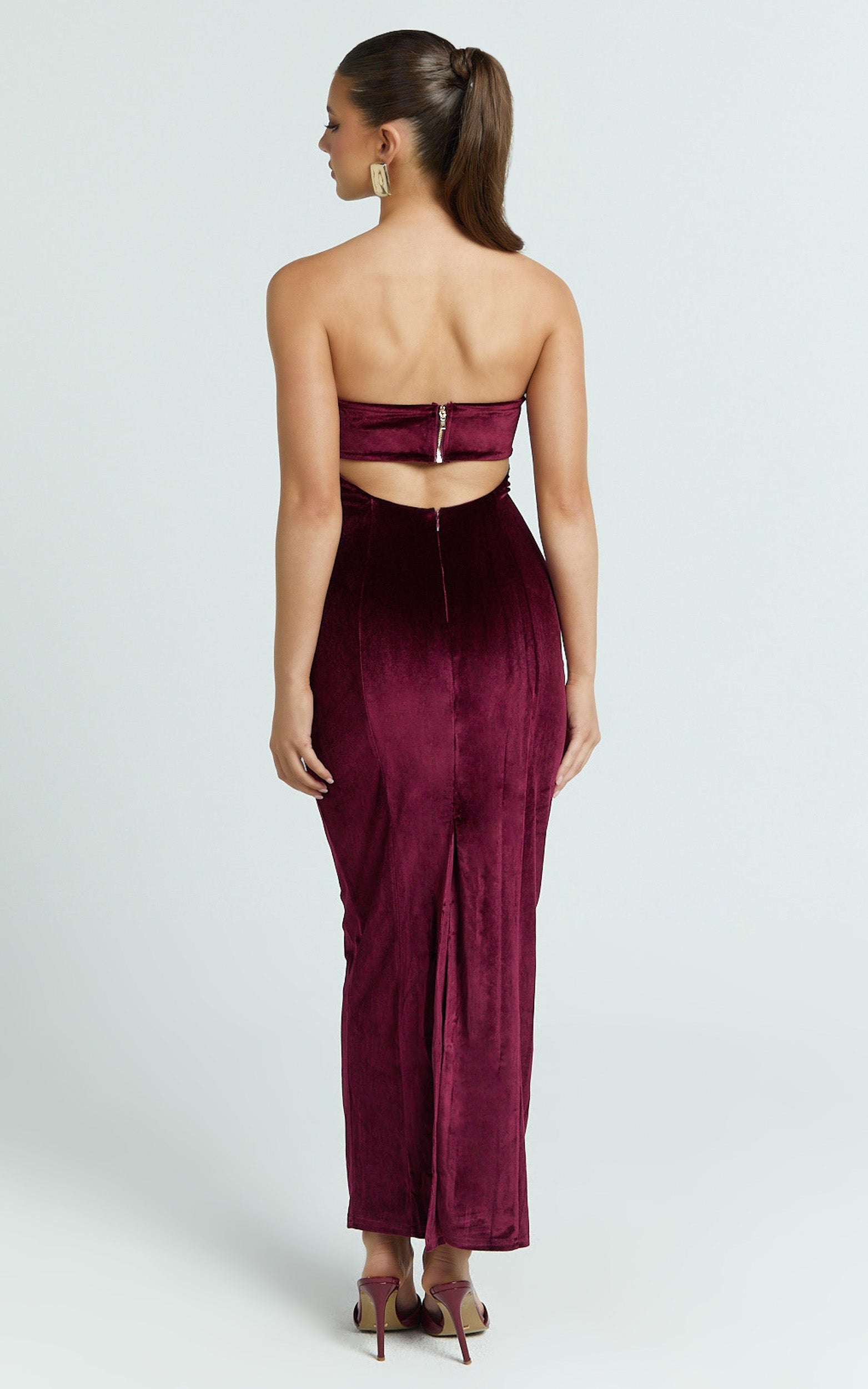 Cartia Maxi Dress locks in a refined fit that skims and snatches, finishing at a dramatic maxi length for long-line luxe. Style it with delicate charm bracelets and an oversized shirt shrugged over the shoulders for a cool-girl layer; swap in Y2K sunglasses for a street-to-soirée finish. This wine showstopper brings timeless glamour with a modern twist, sip, strut, repeat.