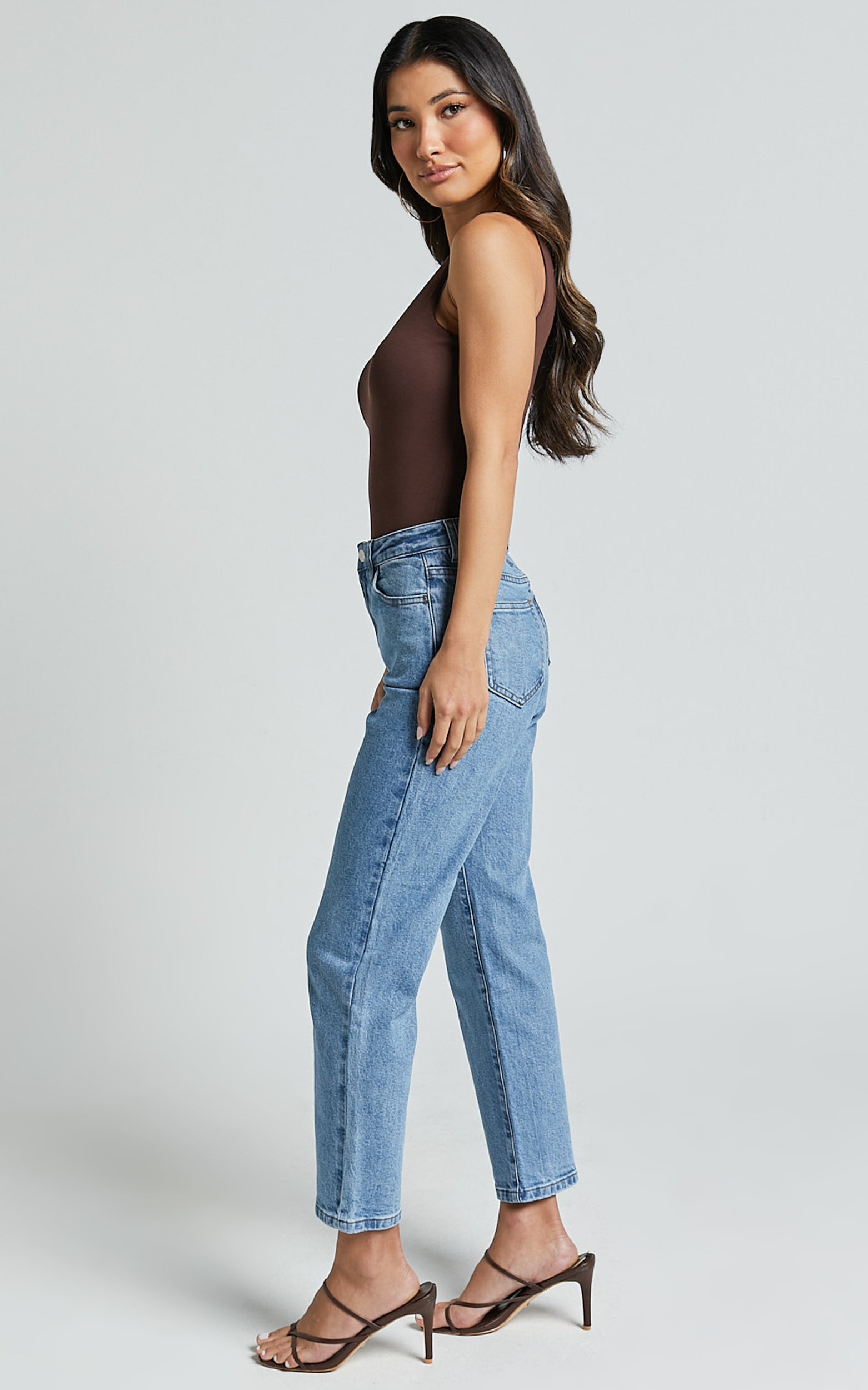 Obsessed with the perfect pair of jeans? Look no further than our Chandler Jeans. These high-waisted, mid-blue wash straight jeans are a must-have addition to your denim collection. Made from 100% cotton, they provide all-day comfort while keeping you on-trend. The cropped length adds a casual and effortlessly cool touch to any outfit. Whether dressed up with heels or styled with sneakers for a laid-back look, these jeans will be your new go-to for every occasion. Say hello to your new favorite pair of denim!