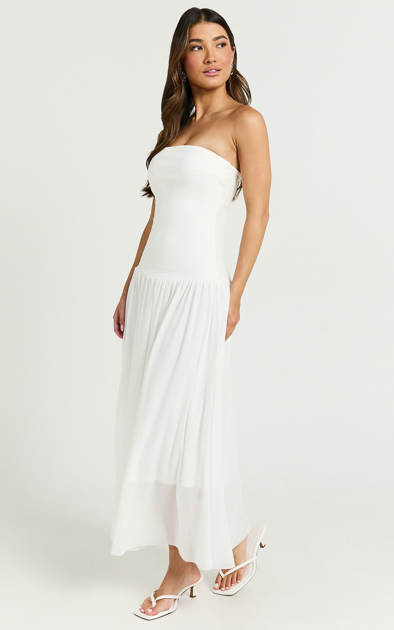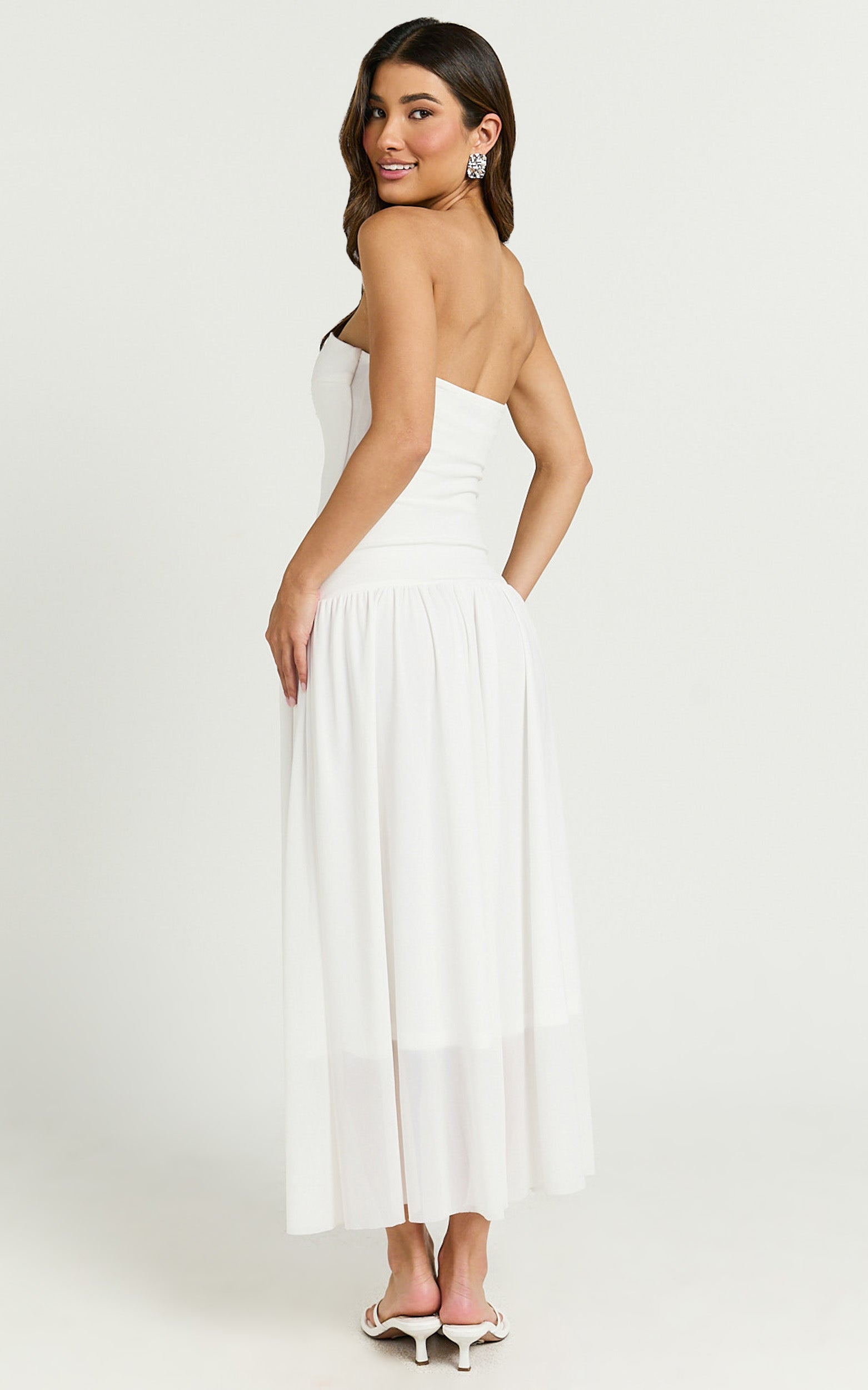 Transform your look with the Cherie Midi Dress, a stunning strapless drop-waist dream in an ethereal ivory hue that's perfect for both sun-drenched day parties and enchanting evening events. Designed to celebrate and empower the incredible diversity of womanhood, this dress is a love letter to the fearless and fabulous.