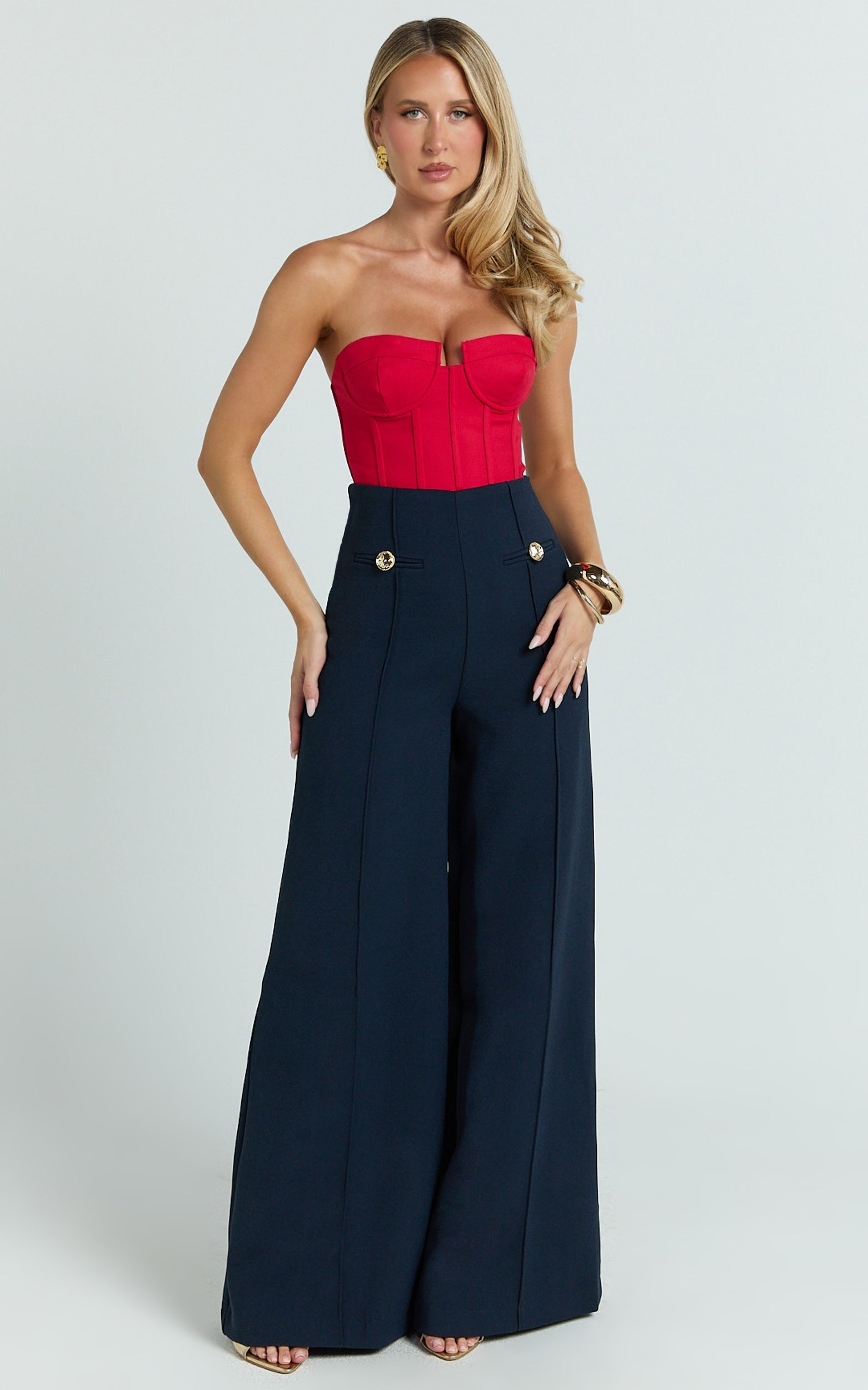 The fluid drape and elongating silhouette serve desk-to-dinner energy, while the deep navy hue nods to the cobalt blue trend in a refined way. Style for statement layering with a fitted top and sleek heels to keep the proportions clean and leggy.