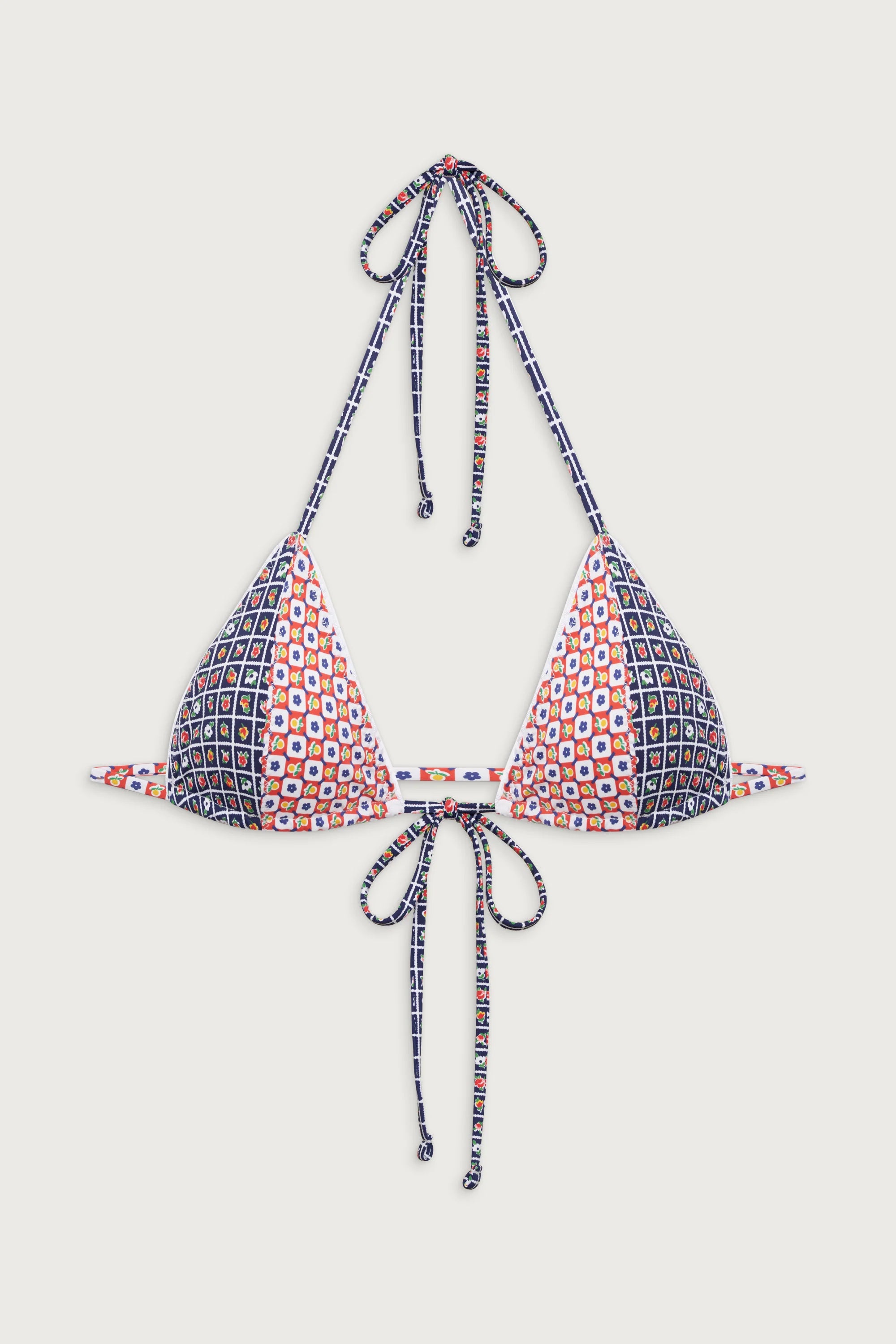 Meet Coastal, a micro top designed with ruffle trim, an adjustable tie front detail, and our new Farmhouse Florals print. Its itty bitty triangle shape makes this bikini top ideal for tanning. Pair the Coastal bikini top with the matching Divine bikini bottom for laying by the pool all day.