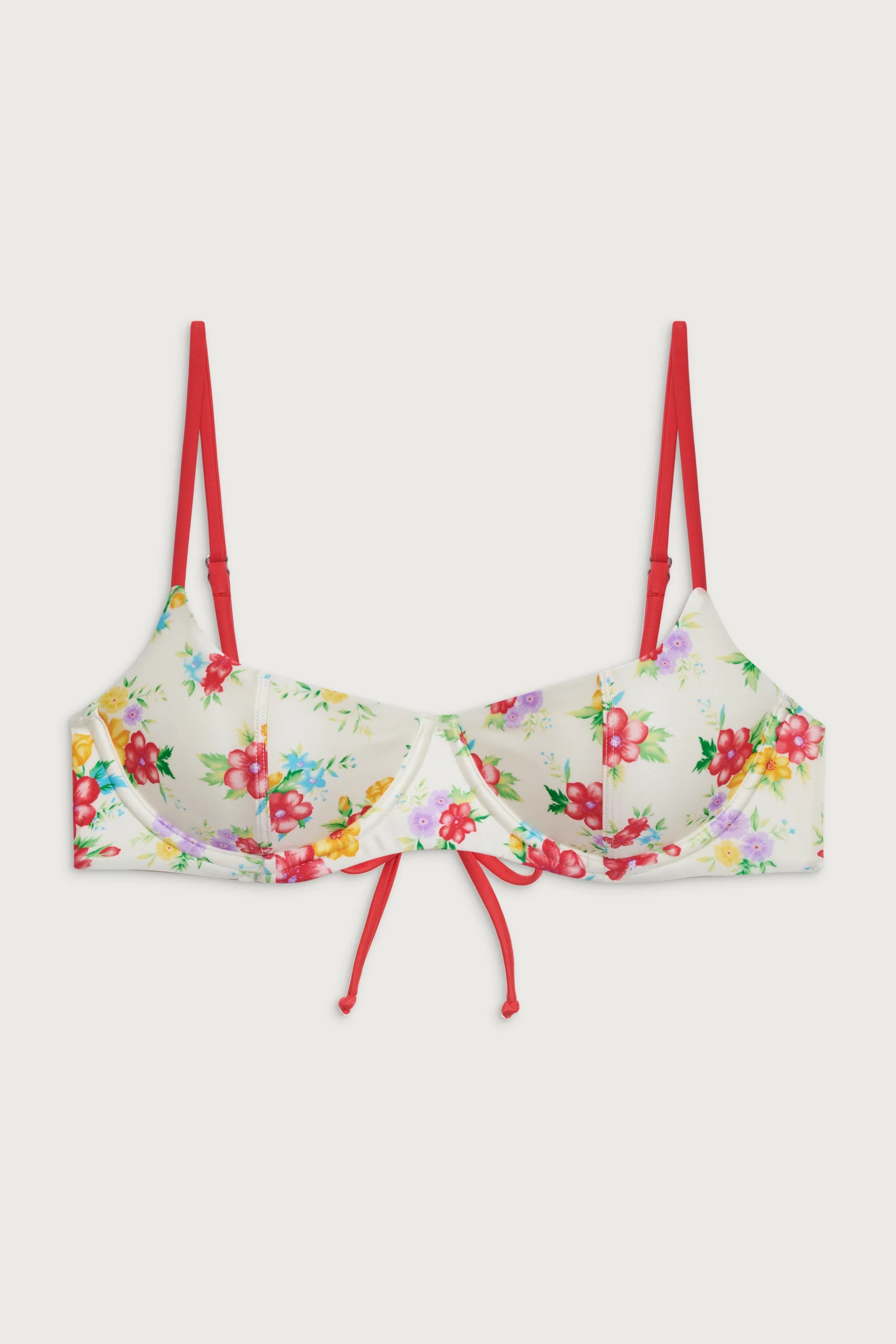 The Cola bikini top is designed to give you the lift you're looking for with adjustable shoulder straps and underwire support. Cola also features glistening shine fabric and our newest floral print, Sweet Hibiscus. Pair the Cola balconette bikini top with the matching Dove bottom as the sweetest spring set.