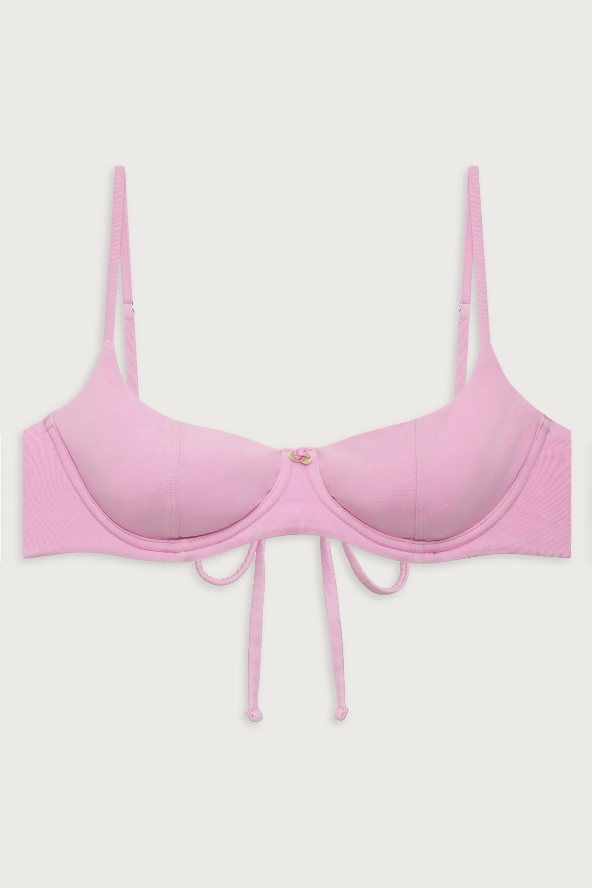 The Cola bikini top is designed to give you the lift you're looking for with adjustable shoulder straps and underwire support. Featuring the sweetest details with our newest shade of pink, French Rose, and a dainty rosette detail that sits on the bust. Pair the Cola balconette bikini top with the matching Dove bottom as the sweetest any-season set.