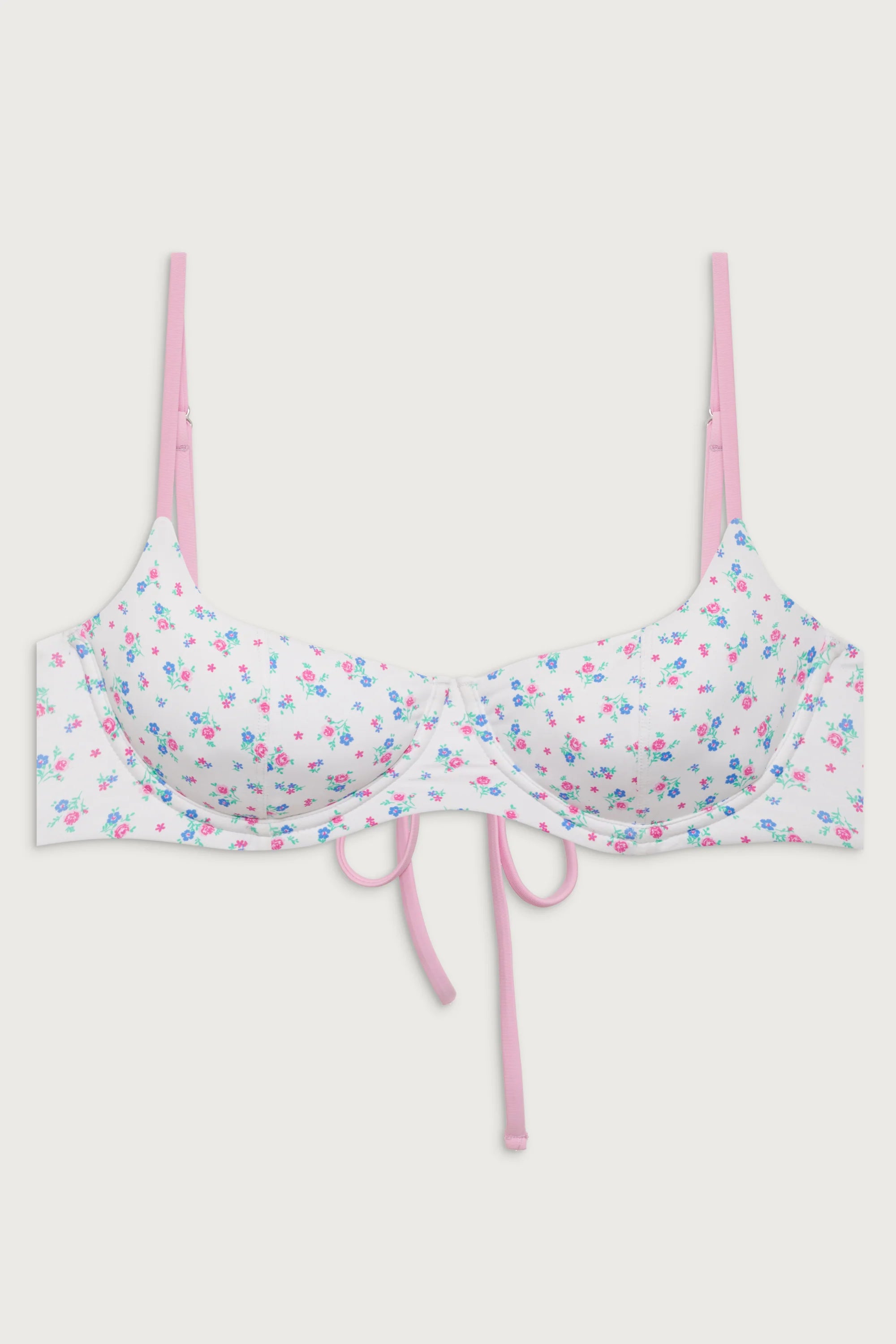 The Cola bikini top is designed to give you the lift you're looking for with adjustable shoulder straps and underwire support. Pair the Cola balconette bikini top with the matching Dove bottom as the sweetest any-season set in our newest floral Sweet Meadow print.