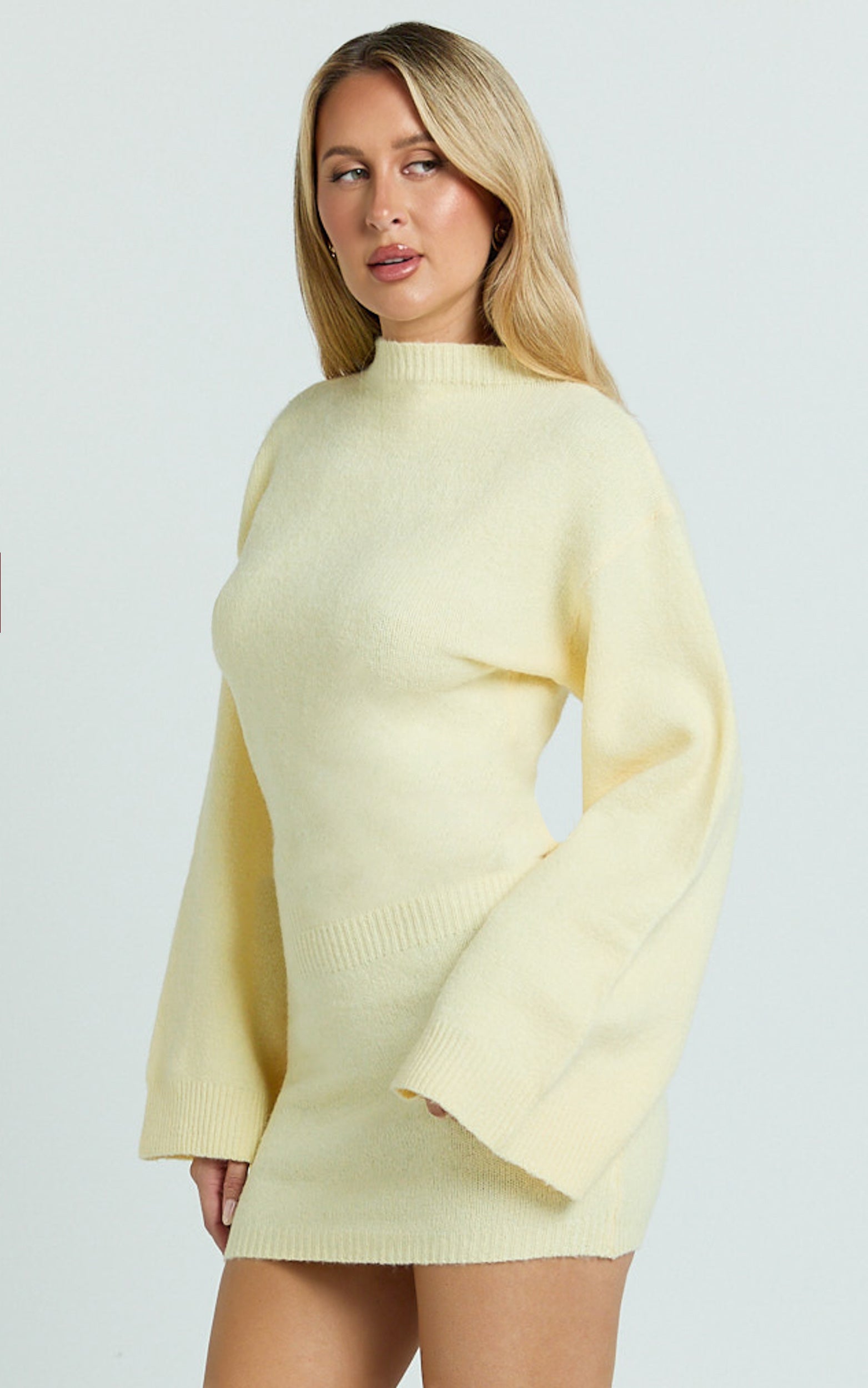 This flirty knit mini brings feel-good energy in a zesty yellow hue with a sleek long sleeve silhouette and curve-loving fit, perfect for desk-to-dinner and every RSVP in between. Think polished, comfy, and a little bit playful, hitting that sweet spot between elevated basics and statement Dresses.