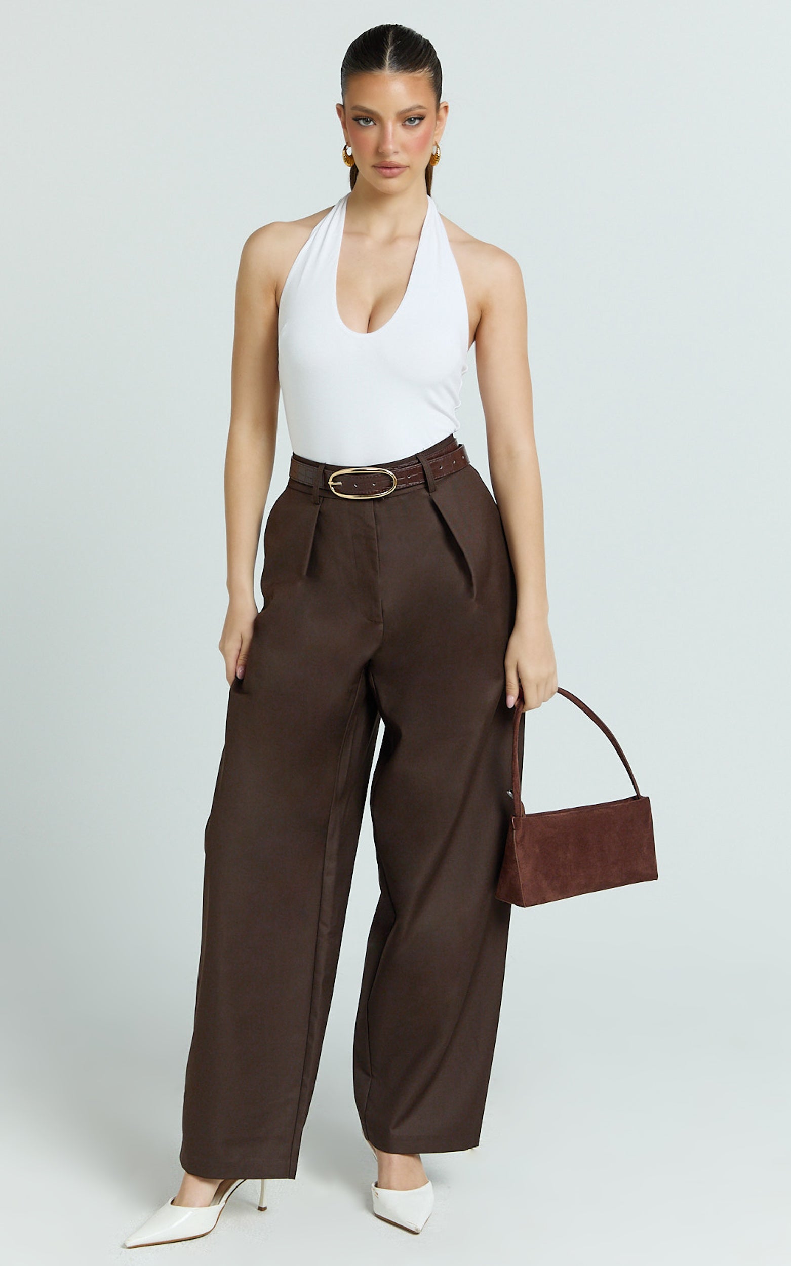 Slip into the Dale Pants to anchor minimal tops and sharp blazers, or dress them down with a fitted tee and chunky loafers. The chocolate hue goes with neutrals and pops of colour, and the clean high rise keeps your waist defined so you can play with cropped lengths. A modern wardrobe hero you’ll wear on repeat.