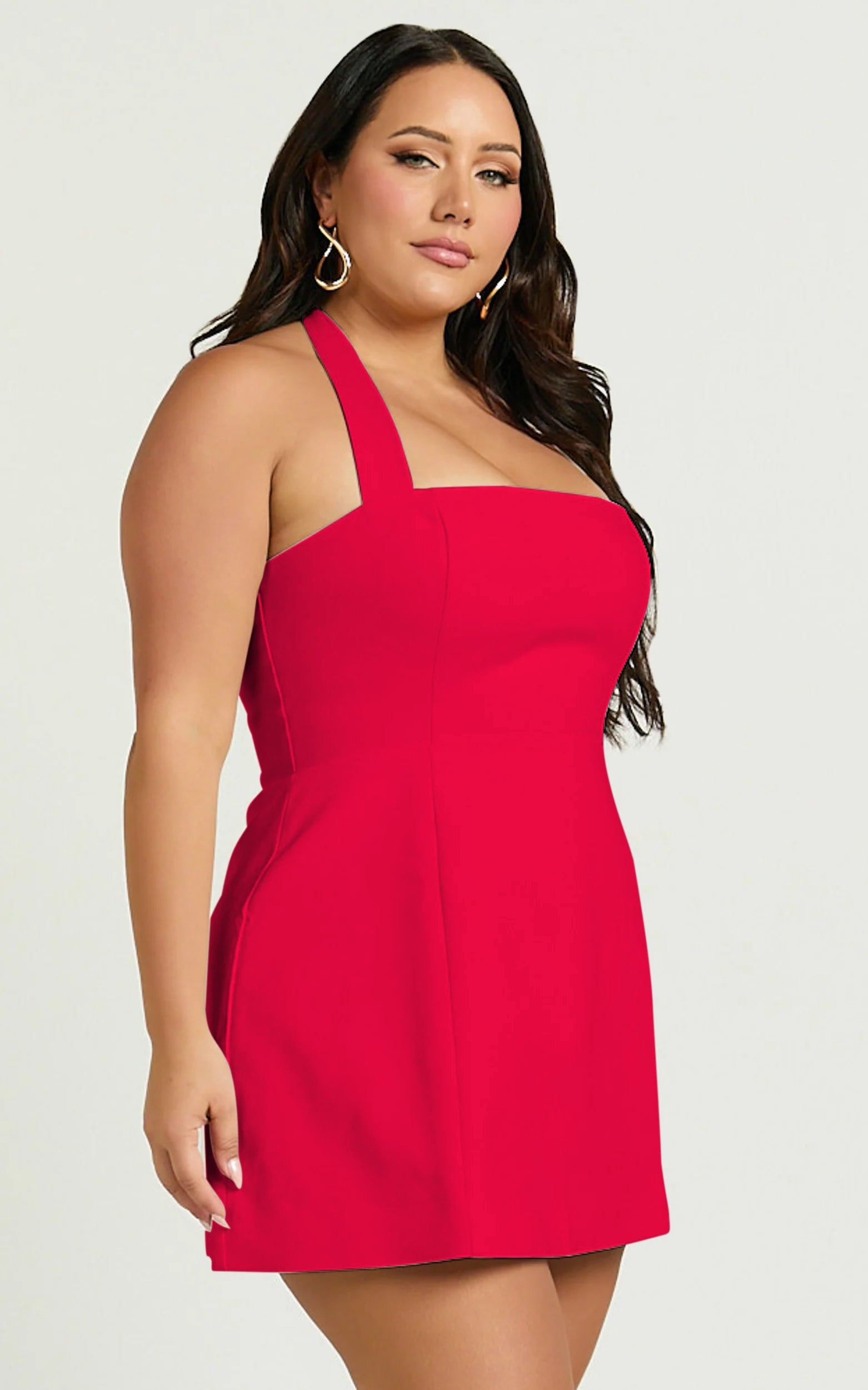 Dante Mini Dress – Halter Neck Tie Tulip Skirt Dress In Red turns heads from first sip to last selfie. The adjustable halter lets you customise the lift, while the tulip wrap gives that cinched, hourglass moment. Add Metallic Sunglasses for a high-gloss finish or tap Sheer Beauty with a light layer for after-dark glow. Your new favourite in Dresses, made to serve looks all season.