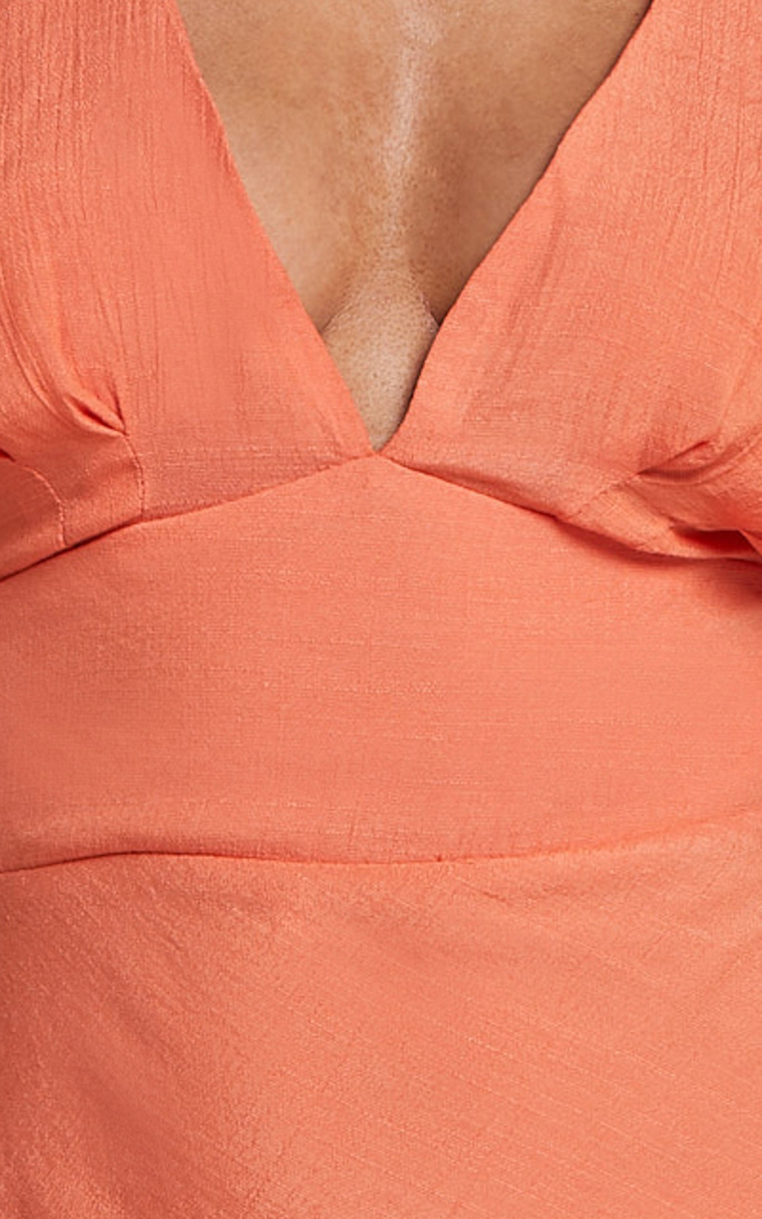 Desiree Midi Dress keeps things flirty with a flowing midi length that elongates your silhouette and moves like a dream from brunch to dance floor. Elevate the vibe with Minimalist Sandals and Metallic Sunglasses for a fresh, trend-driven finish. Wear it solo or layer delicate jewellery, this is the feel-good orange moment your wardrobe’s been waiting for.