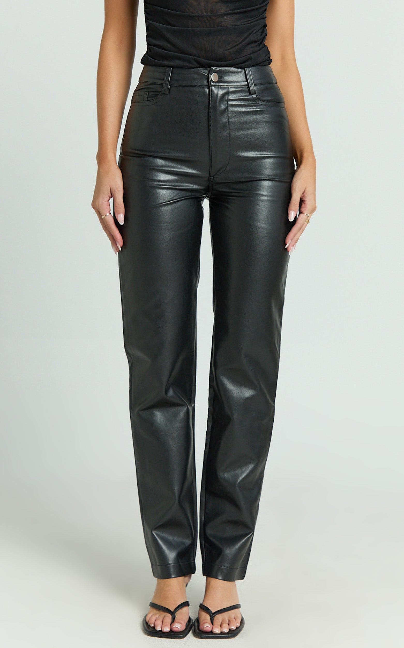 Take your going out looks to new heights with the Dilyenne Pants! These leatherette stunners will give you that enviable off-duty model look we love. They sport a standard straight leg fit with a high rise waist and will work from day to night for any occasion.