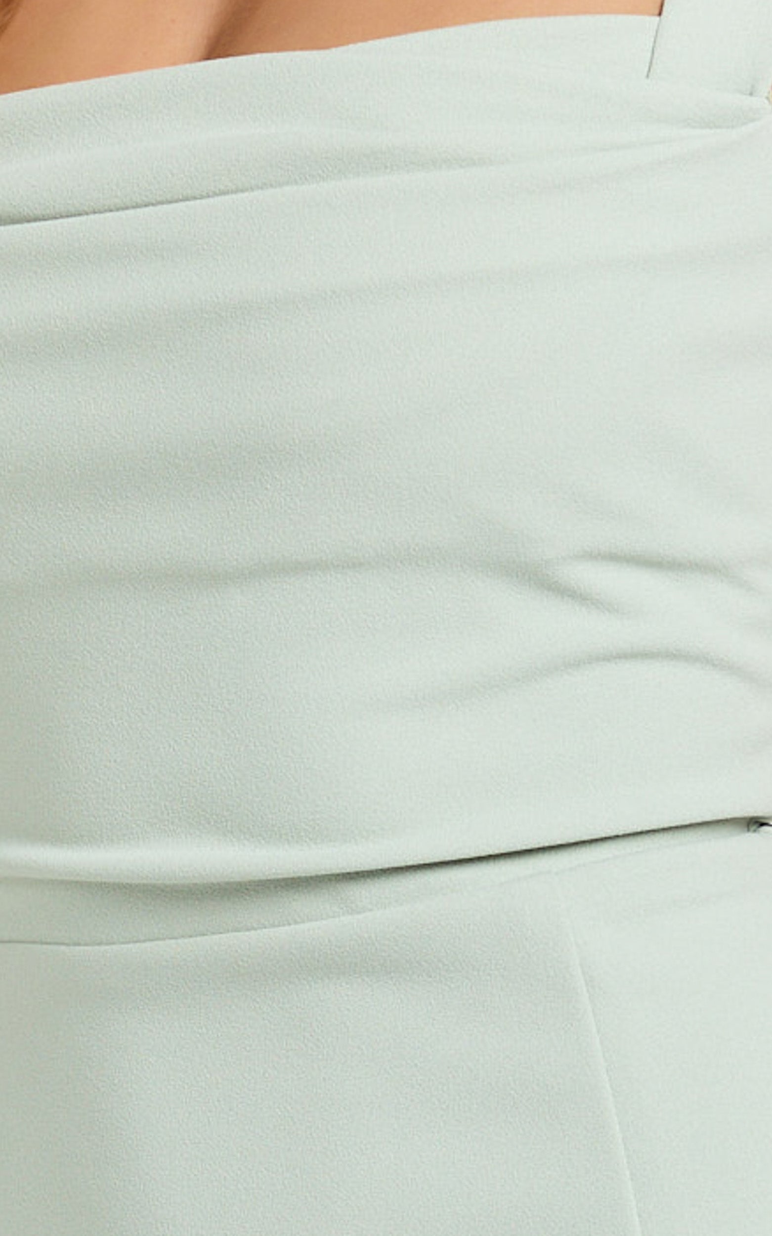 A draped cowl neck, column silhouette and high thigh split deliver polished drama for nights out, weddings and everything in between. The green hue taps the moment’s Balletcore softness while staying undeniably sultry, making it a standout among Dresses for event season.