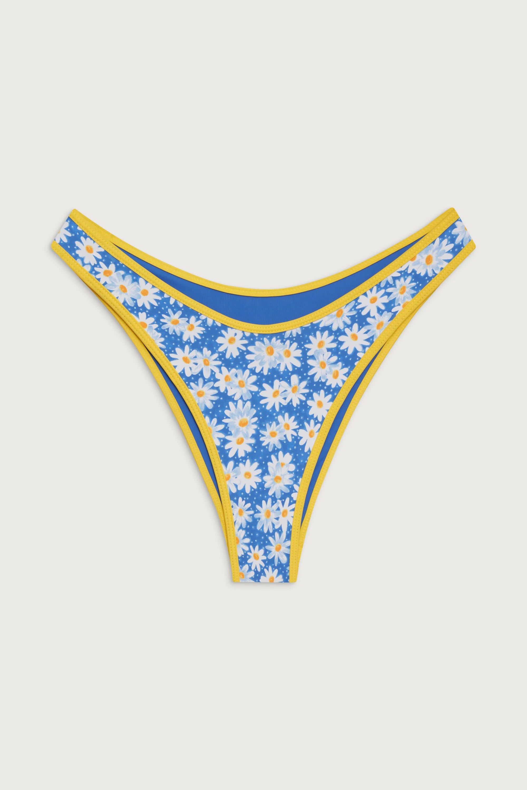 A timeless bikini bottom designed with classic coverage. Meet Dove, a high leg silhouette crafted in a new blue floral print. Pair the Dove bikini bottom with the matching Cola bikini top as your most flattering set.