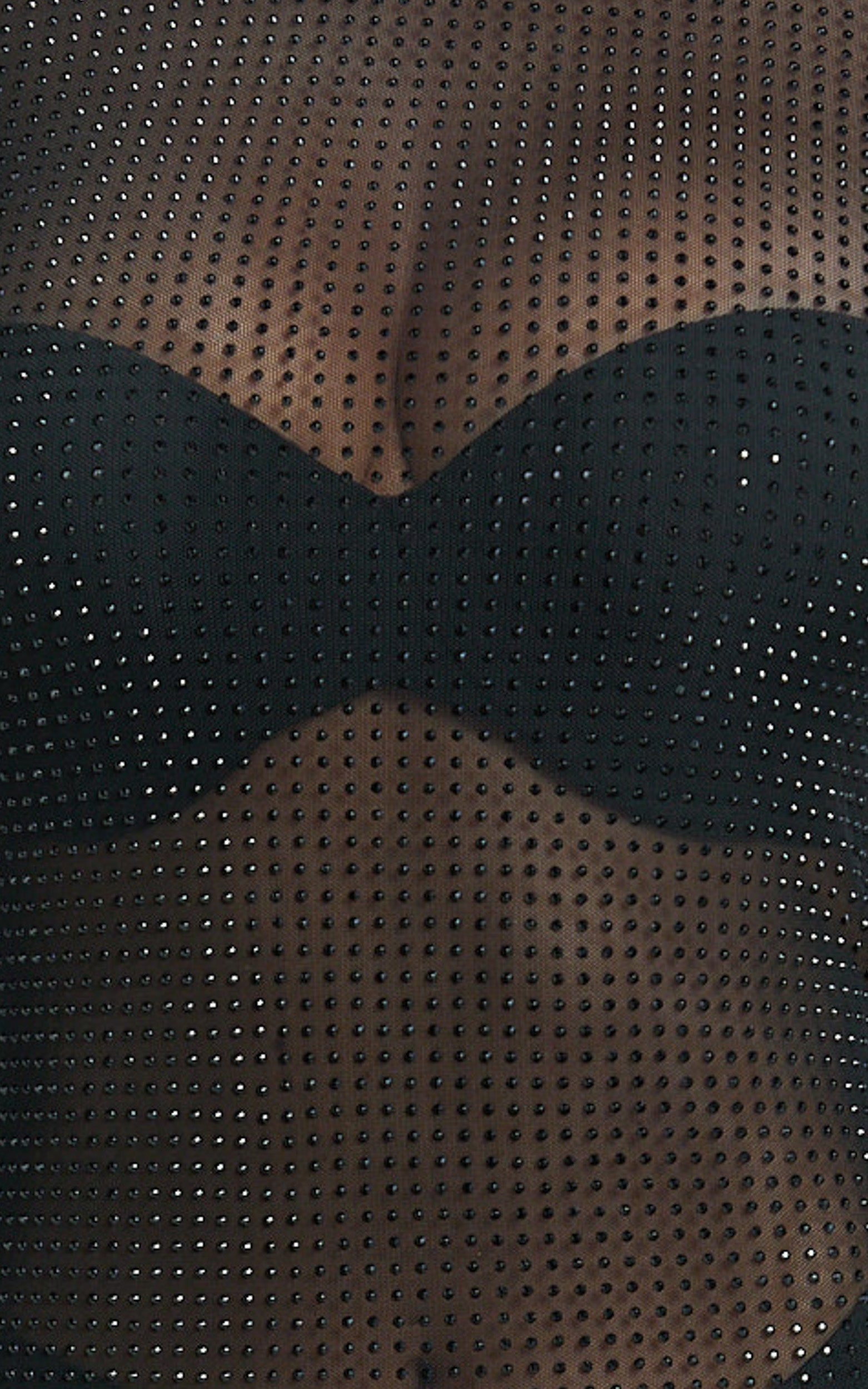 A high diamante neckline and long sleeves balance the sleek, curve-hugging fit, while the floor-grazing length keeps it luxe for cocktails, parties and formal nights. It’s a go-to from dinner to dancefloor, delivering that photo-ready shimmer without trying too hard.