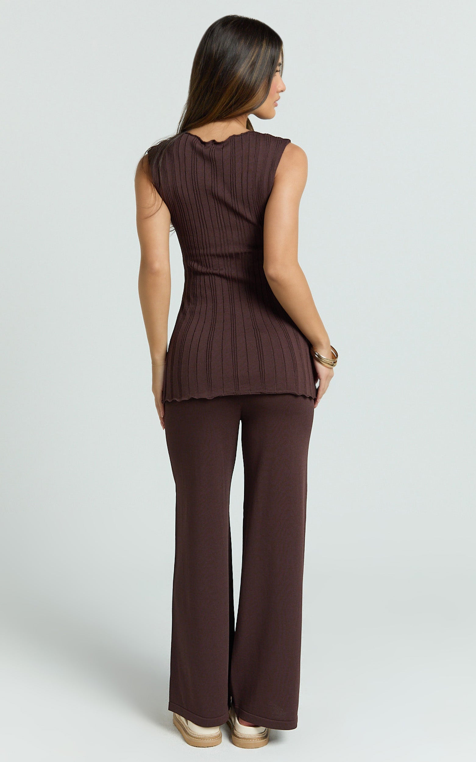 The deep chocolate hue feels elevated yet effortless, while the streamlined silhouette skims and elongates for that polished off-duty vibe. Inspired by capsule wardrobe minimalism, it’s made to mix, match and repeat, desk to dinner, lounge to low-key drinks. Style the top half tucked or untucked; the Co-ord Pants keep the look clean and leggy with a subtle flare.