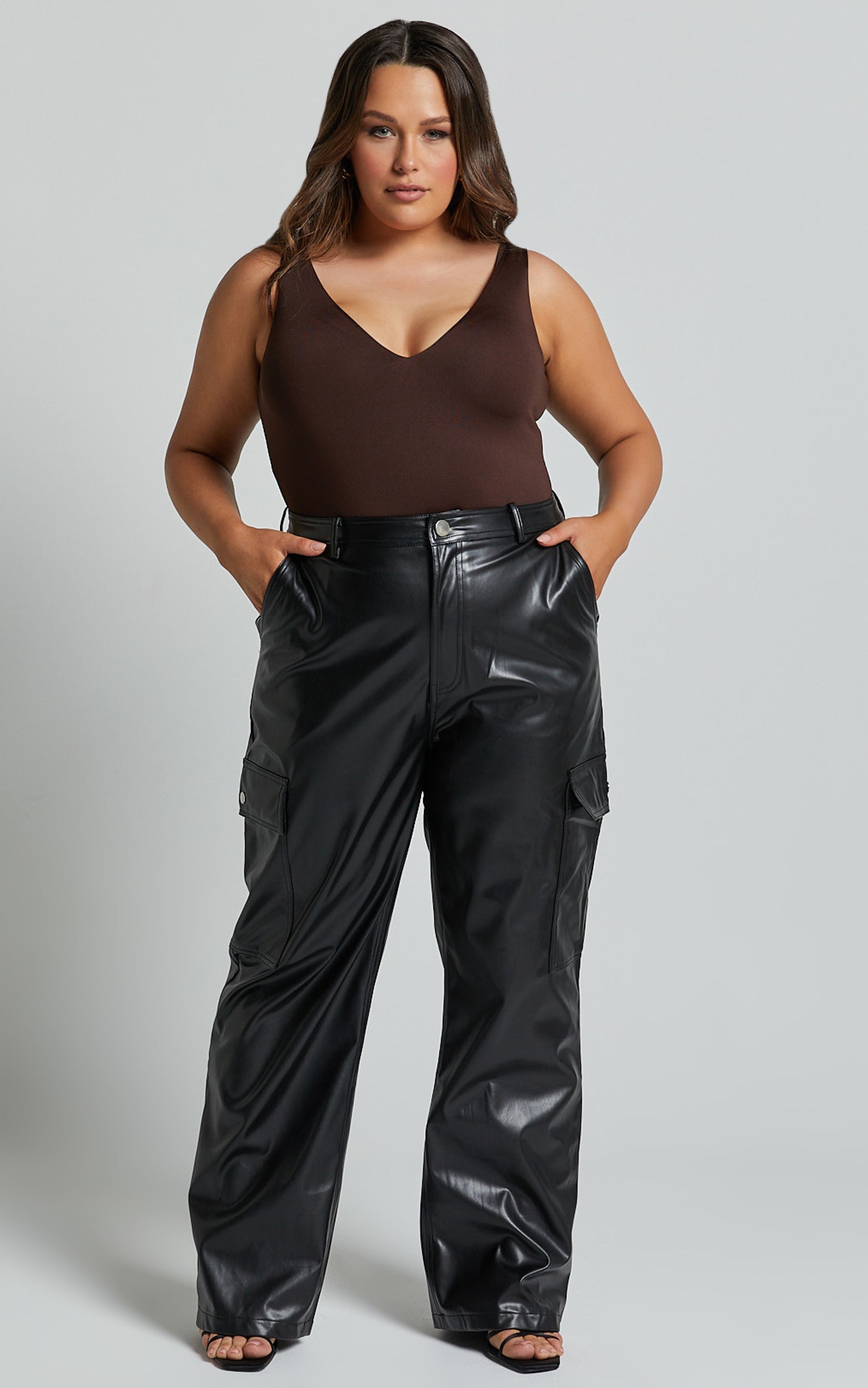 Get ready to elevate your street style with our Elviera Faux Leather Cargo Pants in Black. These pants are the perfect blend of edgy and chic, featuring a trendy cargo design that adds a touch of utility to any outfit. Made from high-quality PU leather and polyester, these black pants are both comfortable and durable. With a full length fit, they're ideal for pairing with sneakers or heels for an effortlessly cool look. Whether you're dressing up or keeping it casual, our Elviera Faux Leather Cargo Pants will make you feel confident and empowered every step of the way.