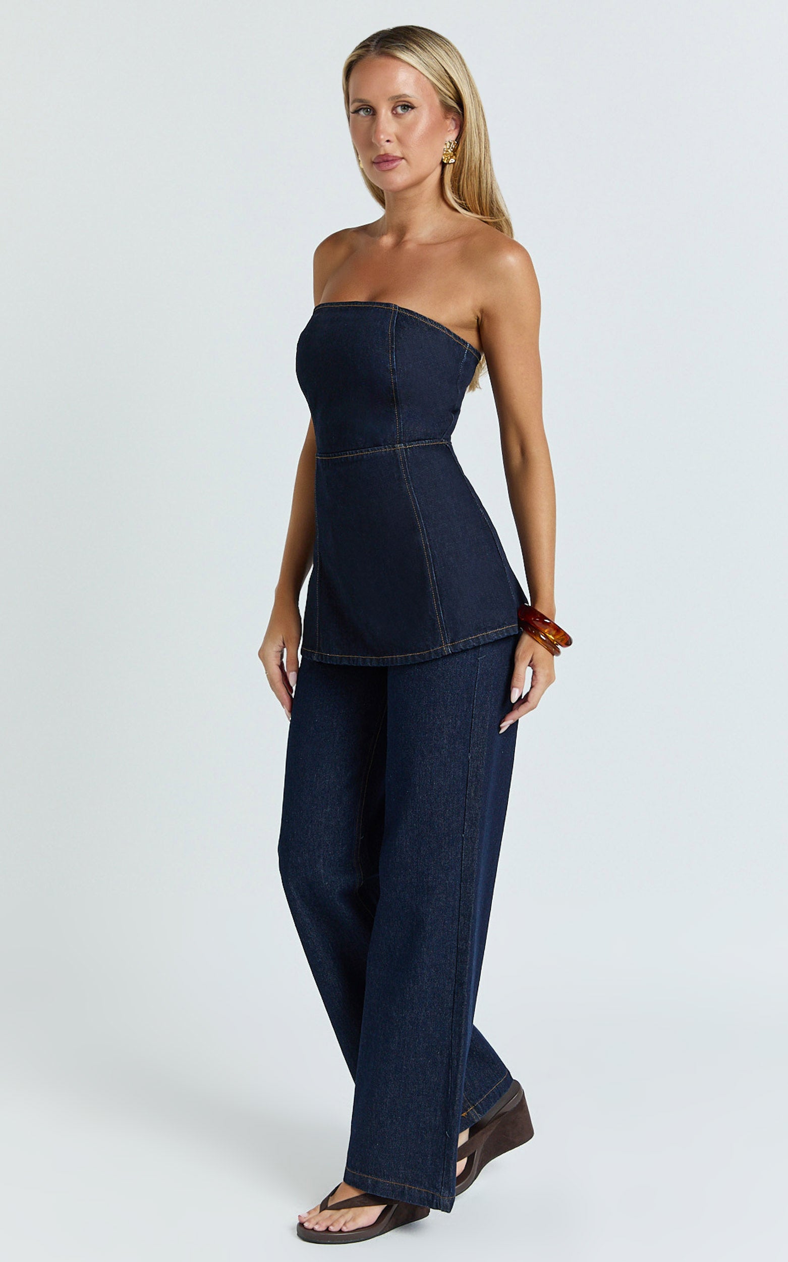 Clean raw denim with tobacco stitching keeps the vibe elevated, while the wide leg drapes for that relaxed, leg-lengthening look. Style with a crisp tee and sleek sneakers for day, then switch to a sheer blouse and heels when you’re feeling a little ladylike.