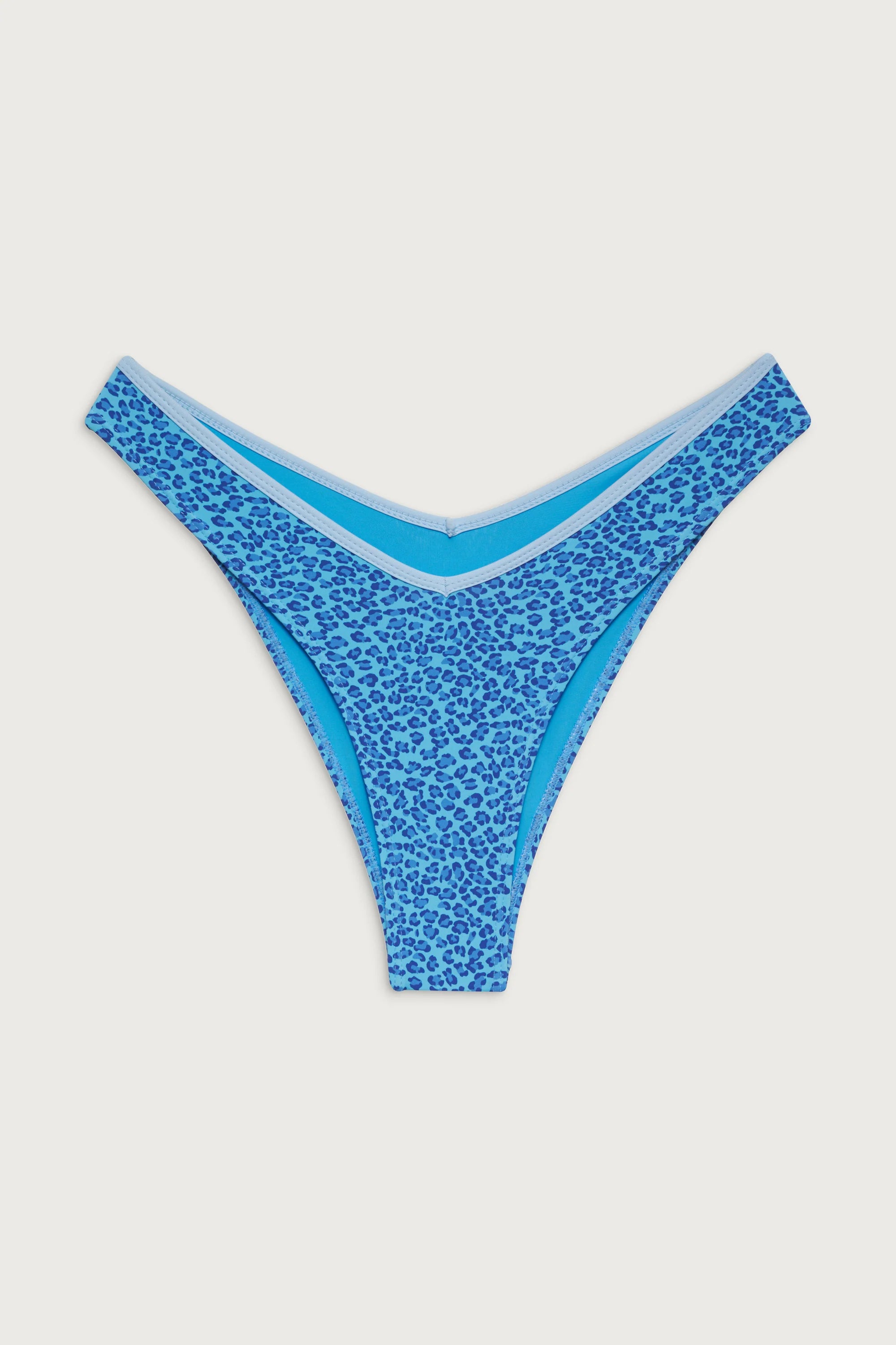 A Frankies Girl favorite designed in our new Cobalt Cheetah print. The Enzo bikini bottom is crafted with cheeky coverage and baby blue binding. Featuring a v-silhouette that flatters all curves and elongates the torso, the Enzo bikini bottom truly has no competition.
