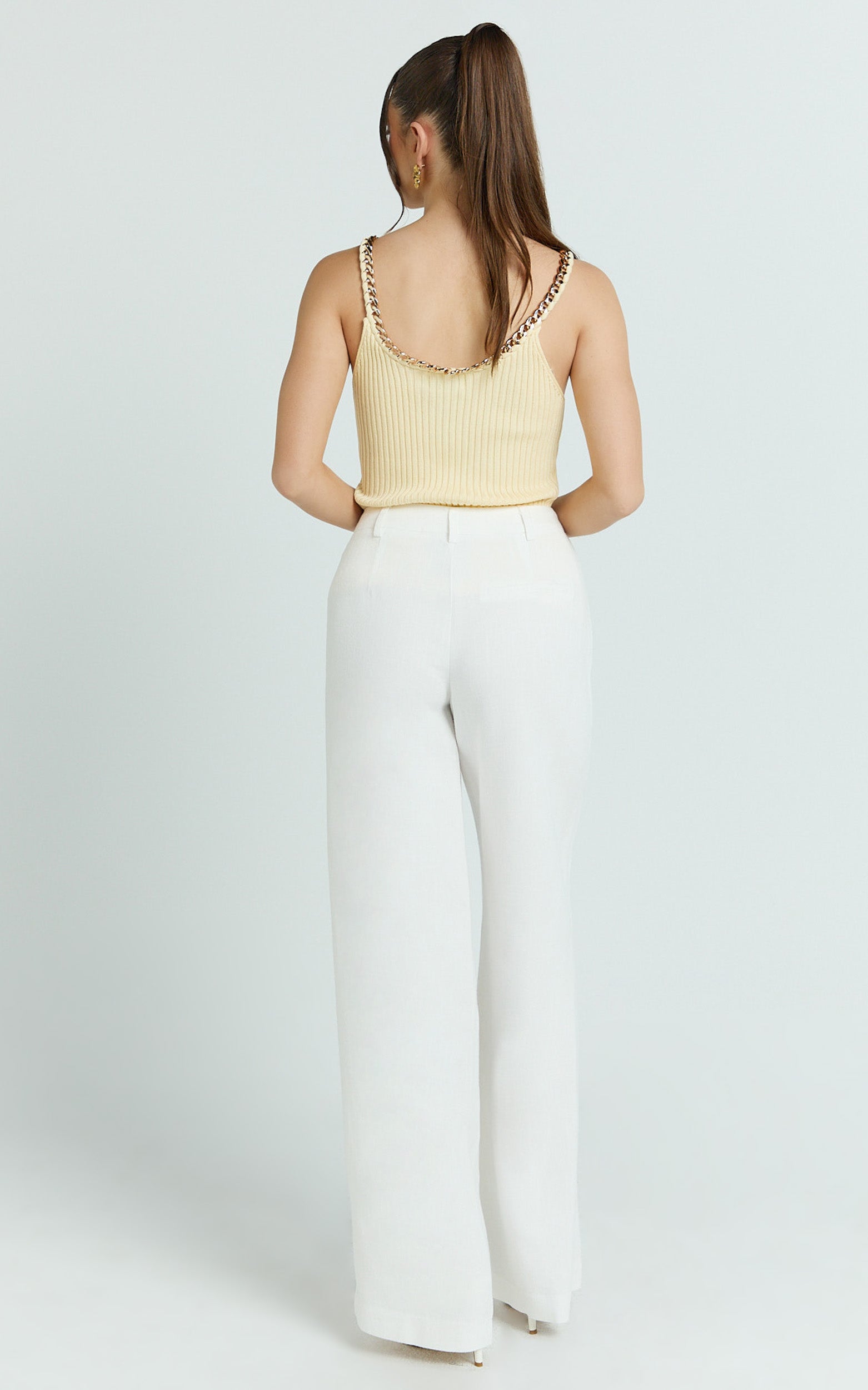 Evie Pants are your go-to for events, office looks, and weekend edits where you want effortless impact. The mid rise flatters the waist, the tailored cut feels refined, and the wide leg brings that fashion-forward flow. Add a hint of butter yellow up top or finish with thong sandals for a modern mix, clean, cool, and ready for compliments.