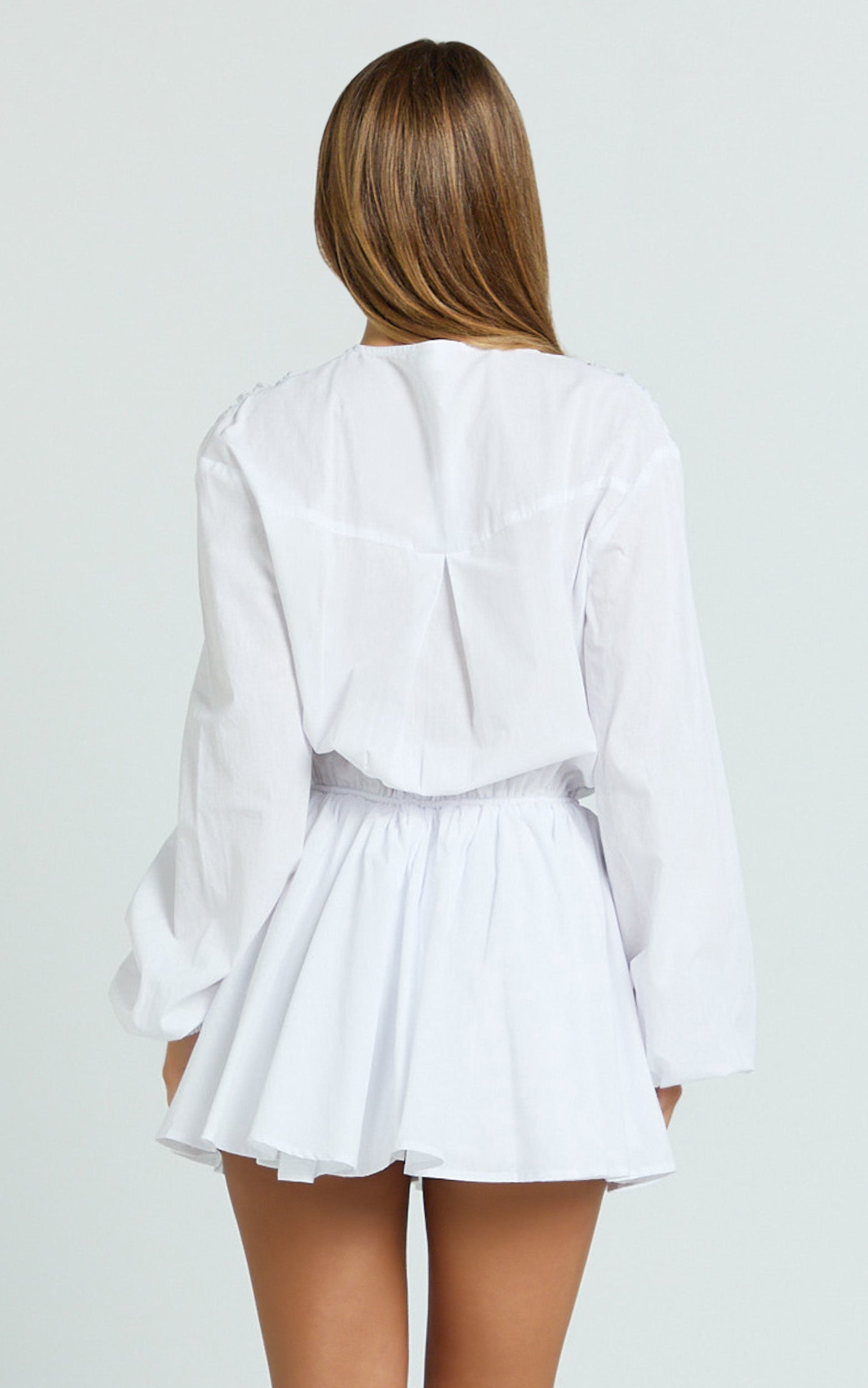 The nipped waist and leg-lengthening hem keep the silhouette fresh and feminine, while the clean White palette makes it a go-to for Dresses season. Slip into the Felix Mini Dress when you want easy polish with a playful edge.