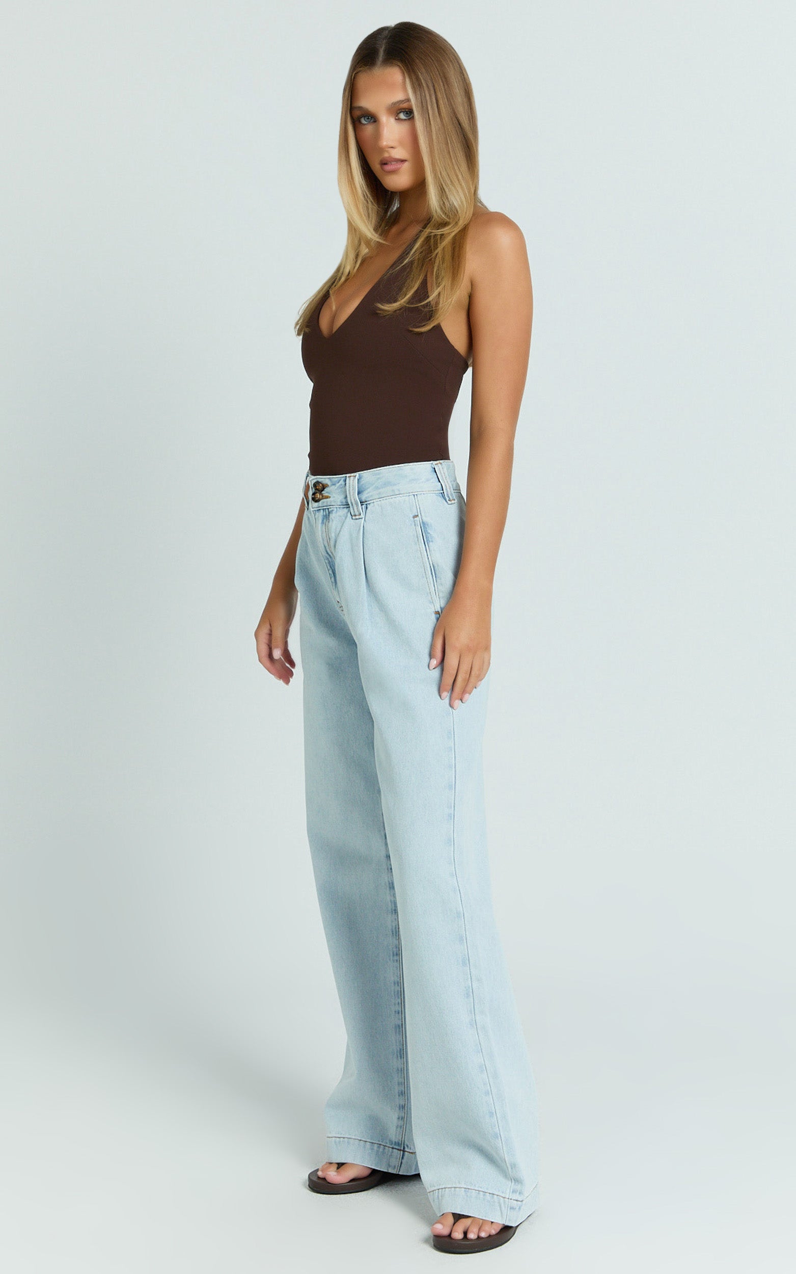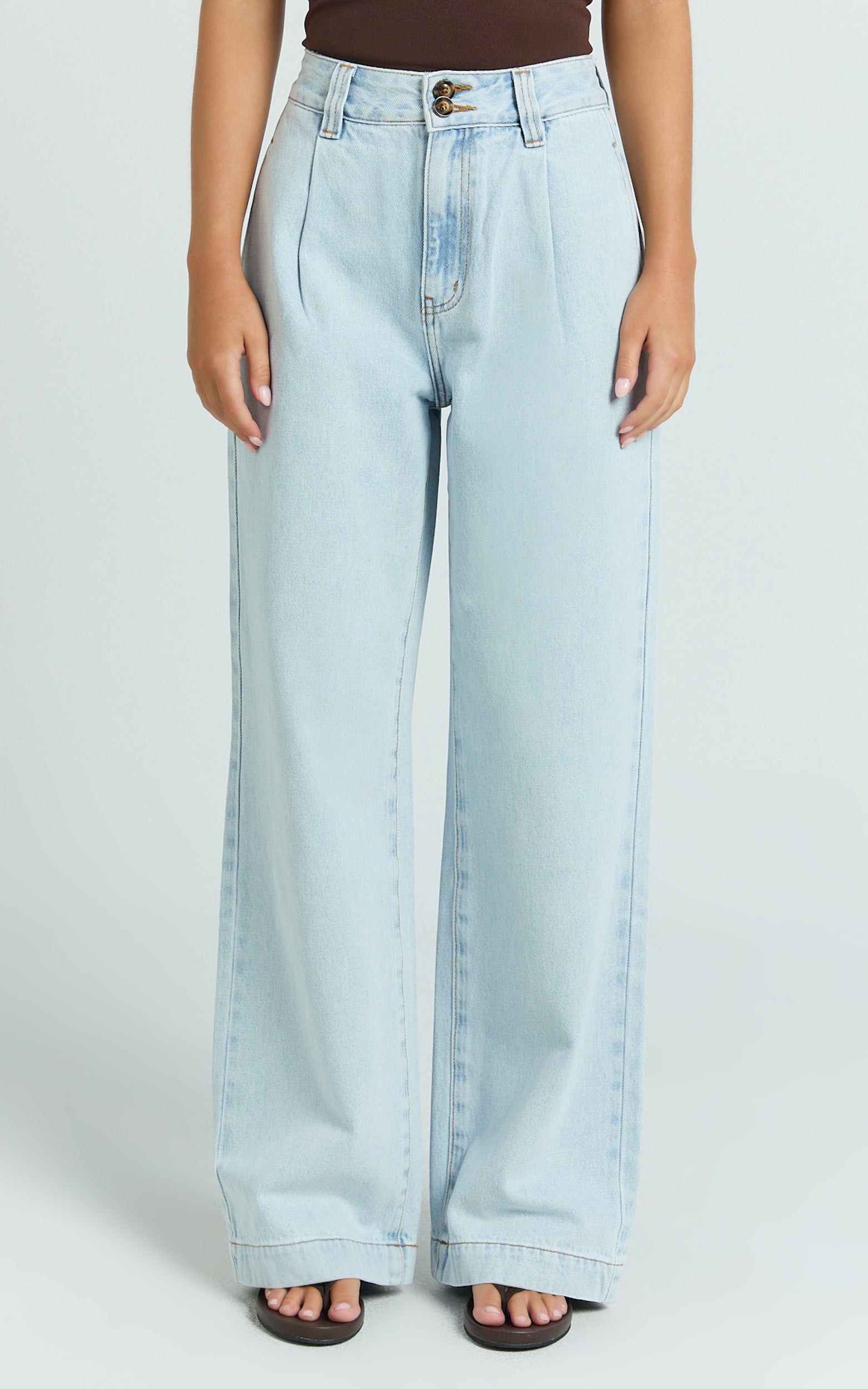 The clean straight cut elongates your legs while the sky-wash blue works with everything from White tank tops to sheer statements for nights out. Dress them up with oversized sunglasses and a chic bag, or lean into weekend ease with flip-flops and a slouchy tee.