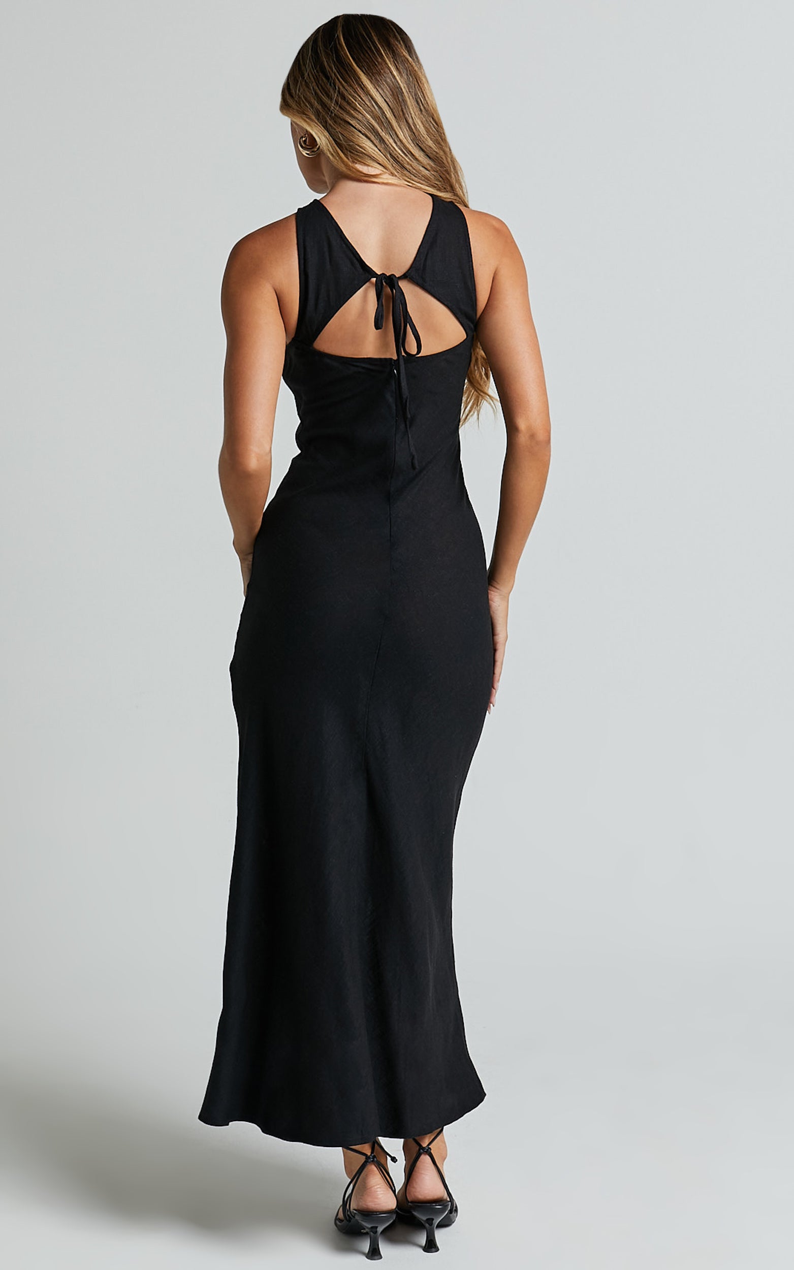 Get ready to turn heads in the Fernley Midi Dress, a sleek and sophisticated slip dress that exudes effortless style. Made with a linen look fabric in classic black, this dress is perfect for any occasion – from casual weekends out to special events. The racer neck adds an edgy touch while the midi length keeps it classy. Crafted from a blend of linen and viscose, you'll stay cool and comfortable all day long. With its sleeveless design and crew neckline, this dress is a wardrobe essential that can be dressed up or down with ease. Embrace your confidence and make a statement in the Fernley Midi Dress today!
