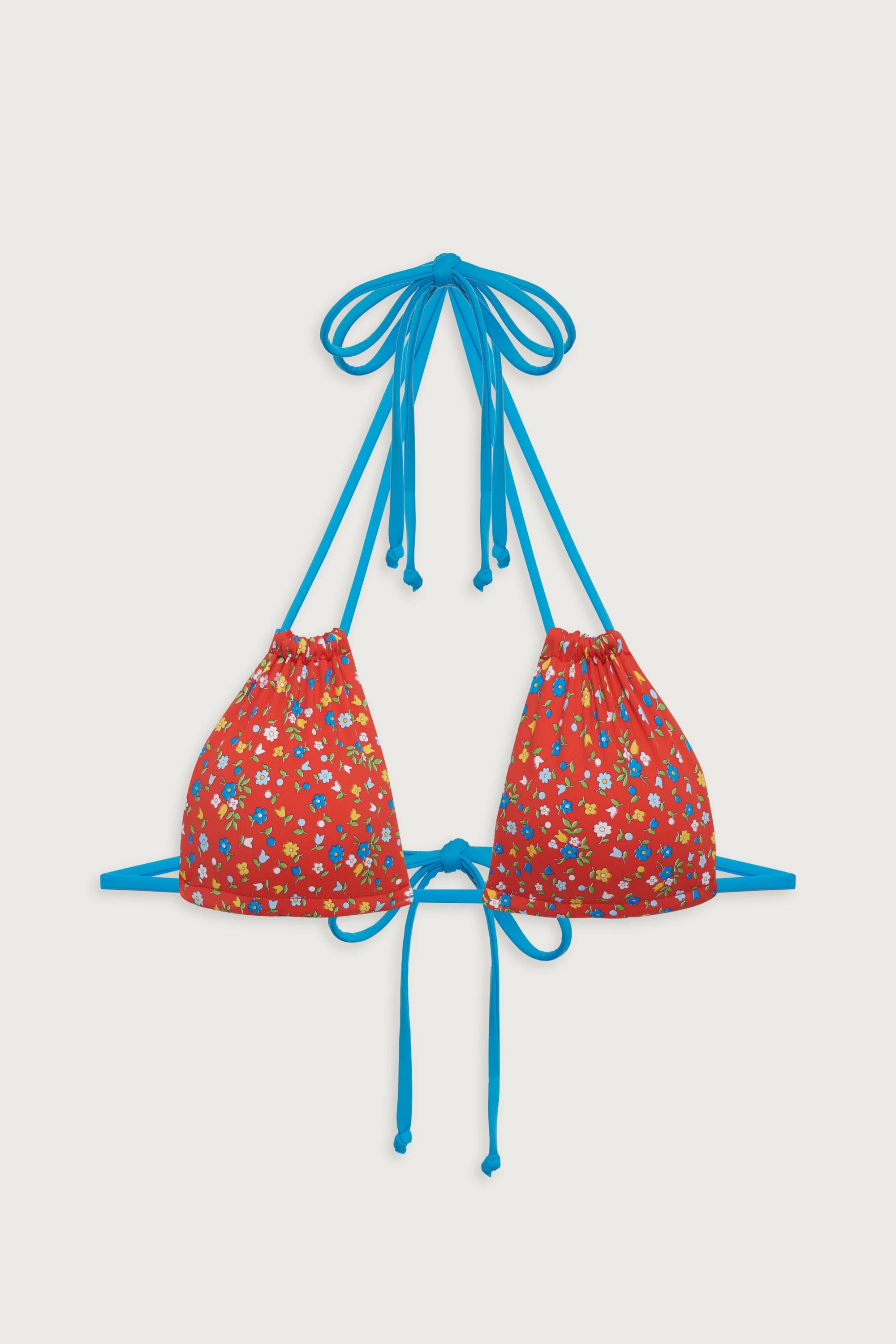 Spring adventures look better in the Florabelle bikini top. This double-strapped bikini top is designed in a skimpy triangle shape with our newest floral print, Seaside Farm. Complete the set with the matching Dove bikini bottom.