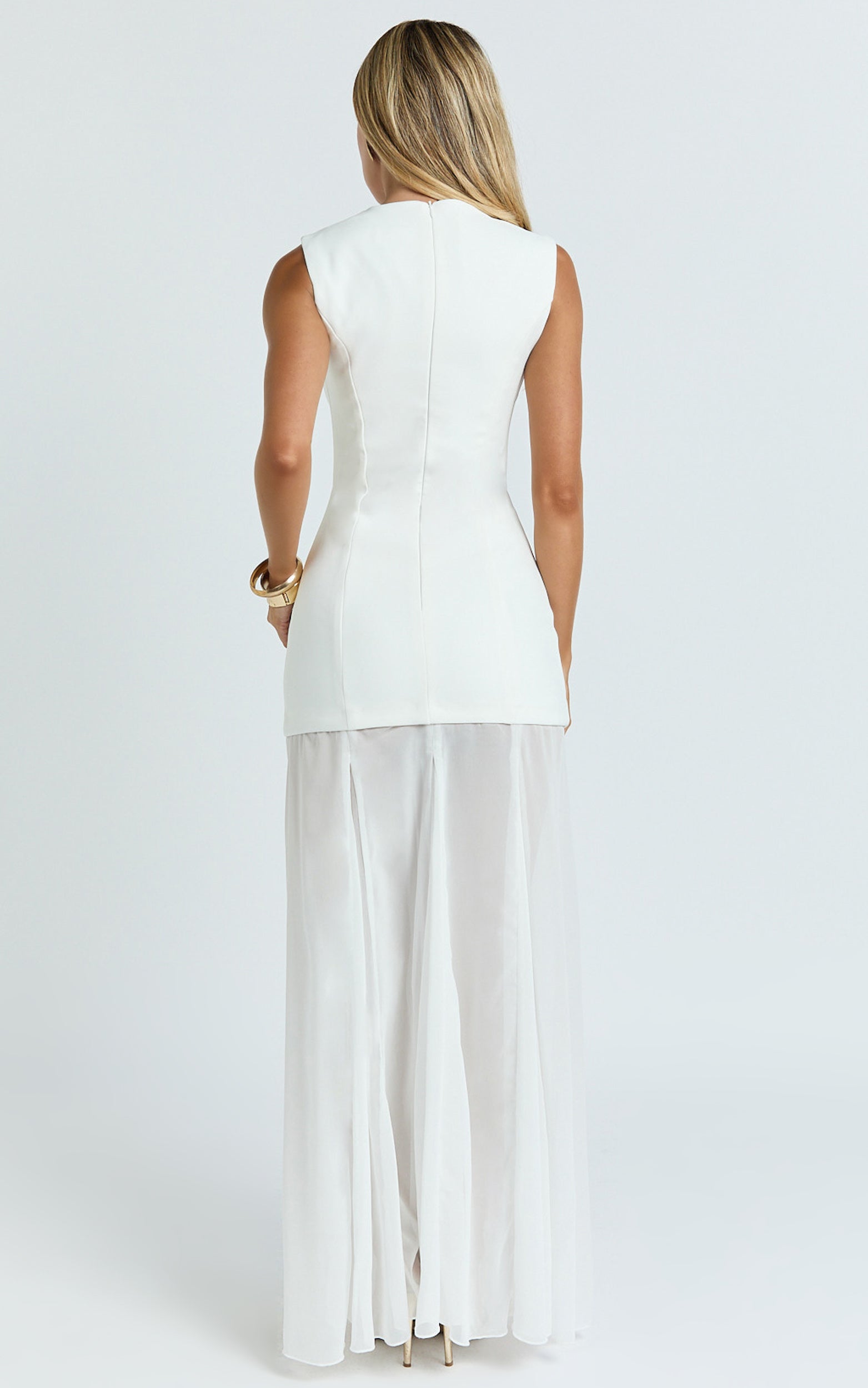A contrast U neckline frames the decolletage while a godet A-line skirt flows with every step, think Balletcore ease with elegant movement. Perfect for parties, long lunches and “all eyes on you” moments, this ivory number elevates your Dresses lineup with clean lines and a flattering, cinched-through-the-waist silhouette.