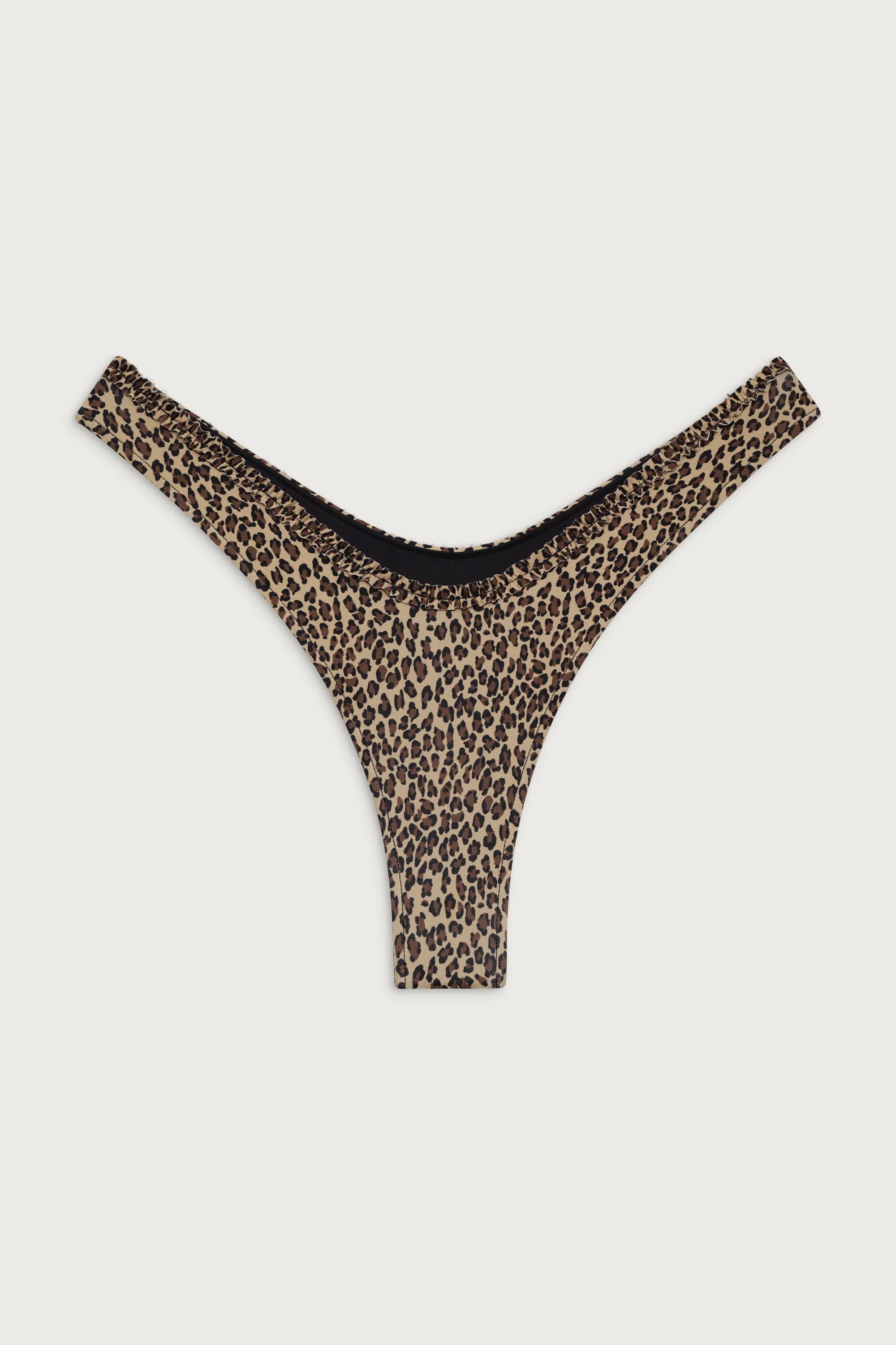 Our best-selling micro bikini bottom is back. Designed with a high leg cut and a new animal print, the Full Moon bikini bottom will be your go-to vintage inspired silhouette. Pair Full Moon with the matching Cola bikini top in Baby Leopard as the perfect travel set.