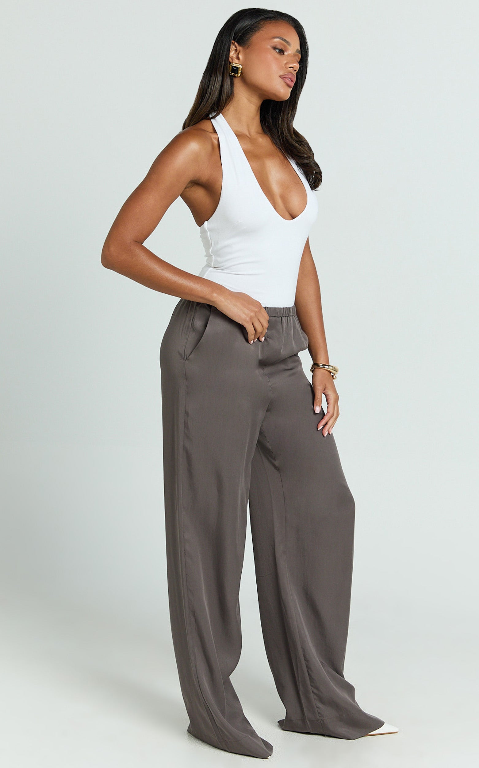 The relaxed cut drapes with that easy flow, while the low-rise waist sits chill and comfy for everyday wear. Meet your new wear-on-repeat grey pants: streamlined, polished, and undeniably cool.