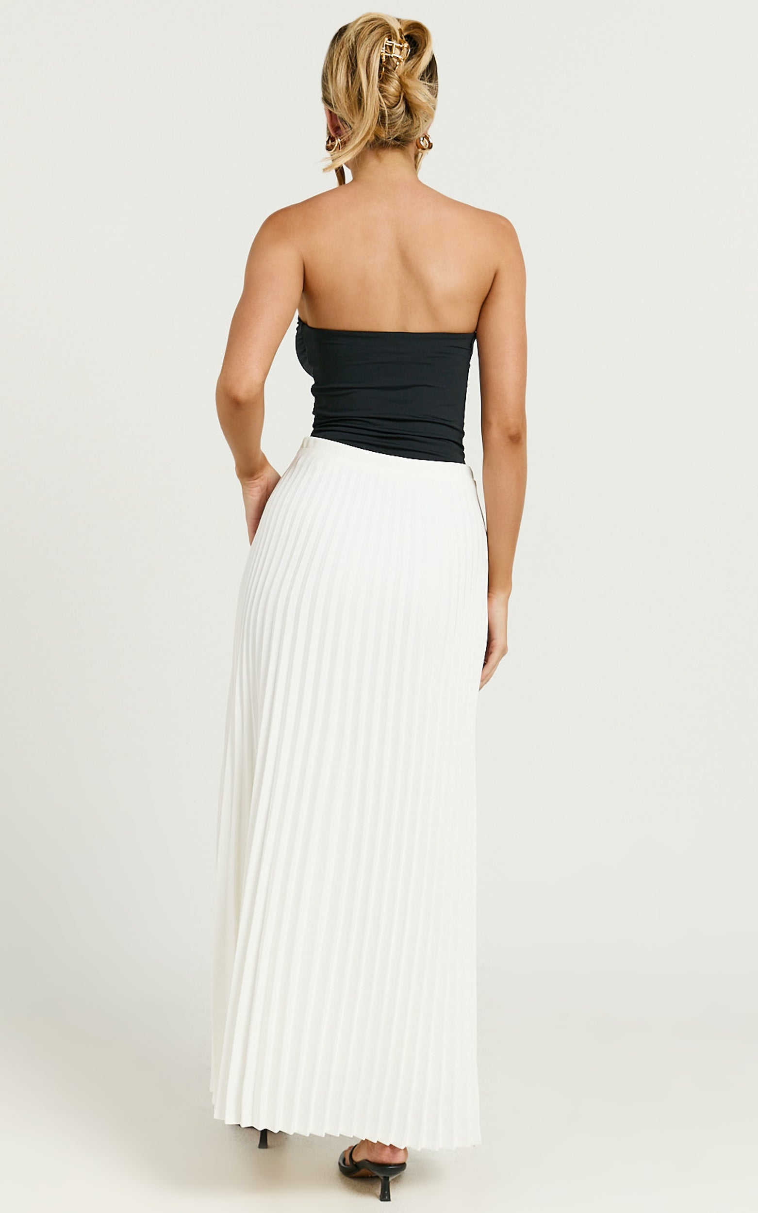 Crafted in crisp white, this high-waisted A-line skirt captures that effortlessly chic, minimalist elegance fresh from this season's runway trends. Its graceful pleats and flattering waistband highlight your silhouette beautifully, ensuring you look and feel comfortable and stylish all day.