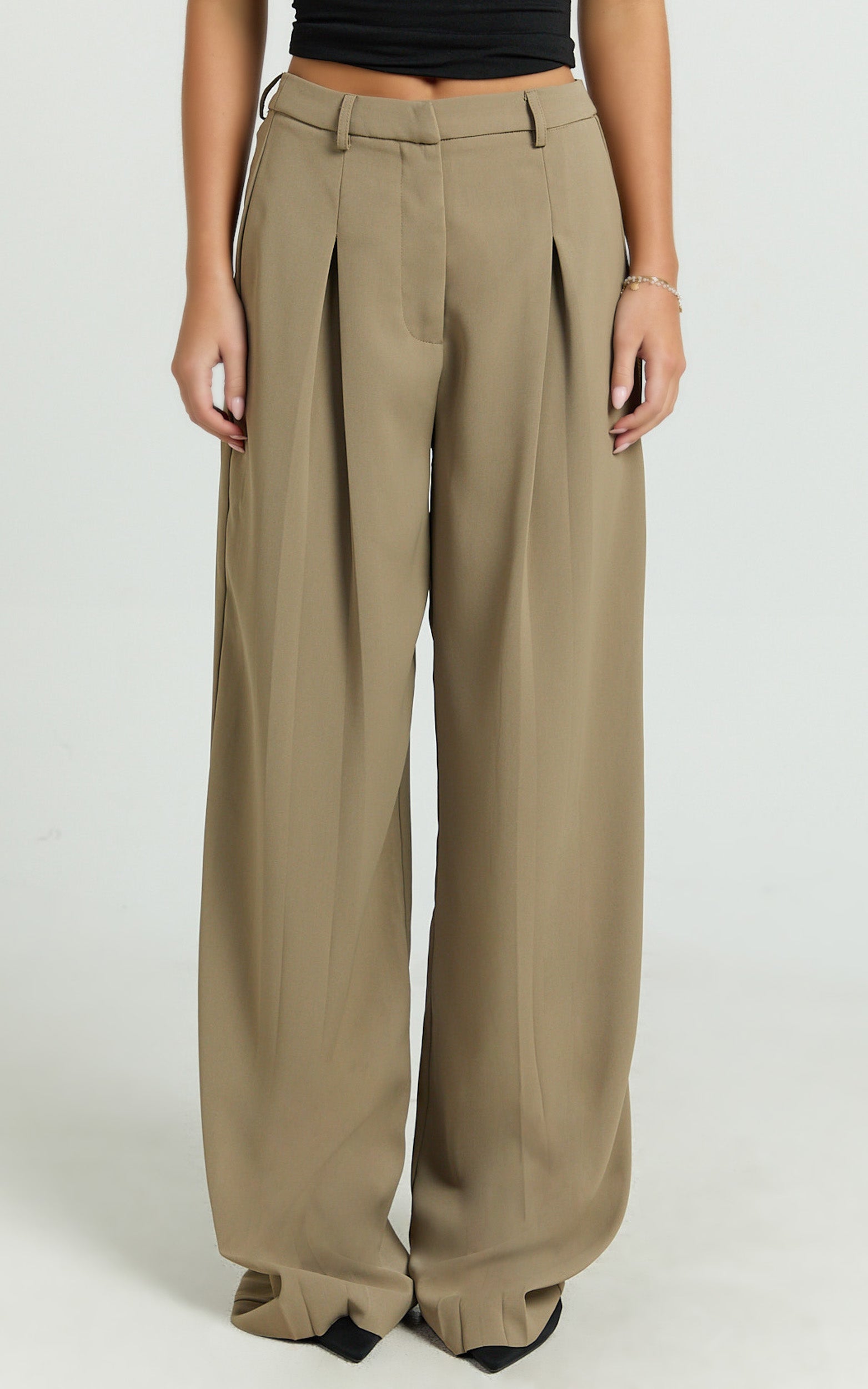 These mid waist pleated wide leg Pants bring that relaxed “quiet luxury” vibe with a fluid drape and a leg-lengthening cut that moves with you. The tailored pleats keep it polished for desk-to-dinner, while the rich green feels fresh for any Spring/Summer collection line-up.