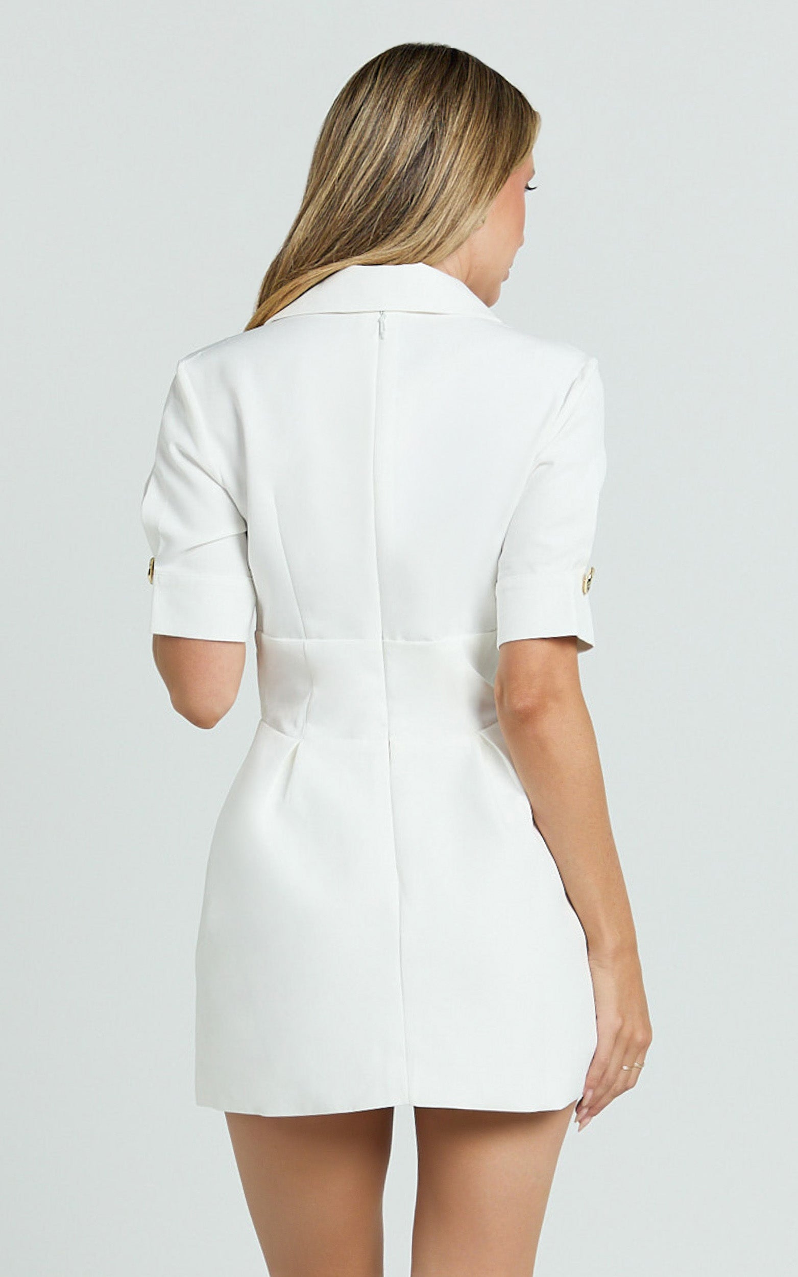Slip into the Helena Mini Dress for a crisp look that pairs seamlessly with Platform pumps or Patent-leather pumps by night, and Leather slides for day. Add Square sunglasses for a cool-girl finish. A forever-versatile piece for your rotation of white Dresses that goes from desk to drinks without missing a beat.