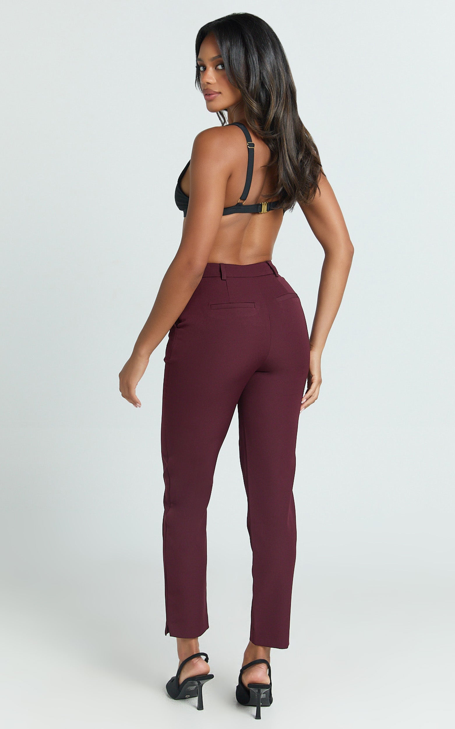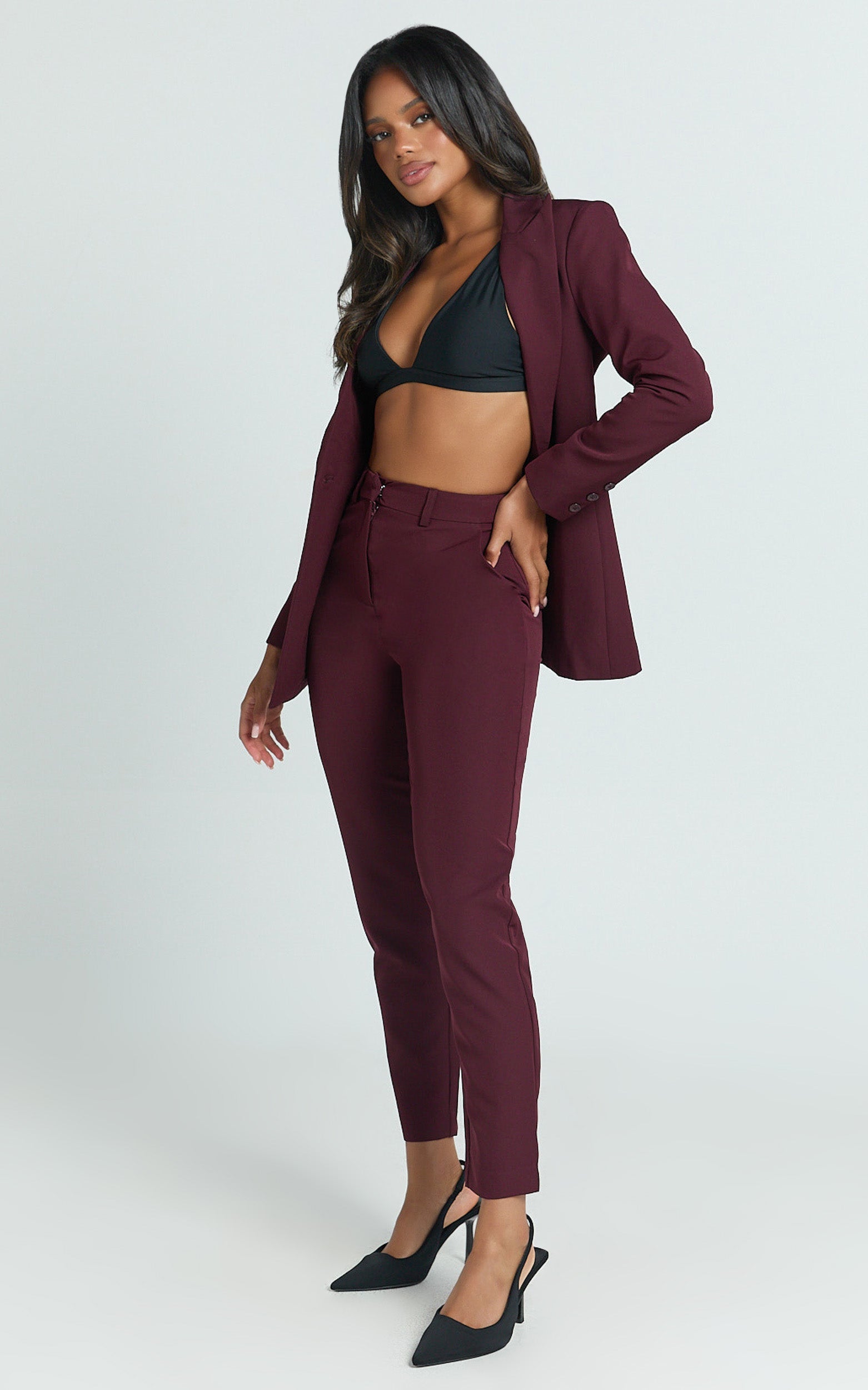 Sleek pleats and a clean, elongating leg mean desk-to-dinner polish with zero effort, just add a fitted top and strappy heels for a statement outfit that still feels refined. The deep red hue gives minimalist looks a bold twist, while the streamlined cut keeps things chic, not shouty.