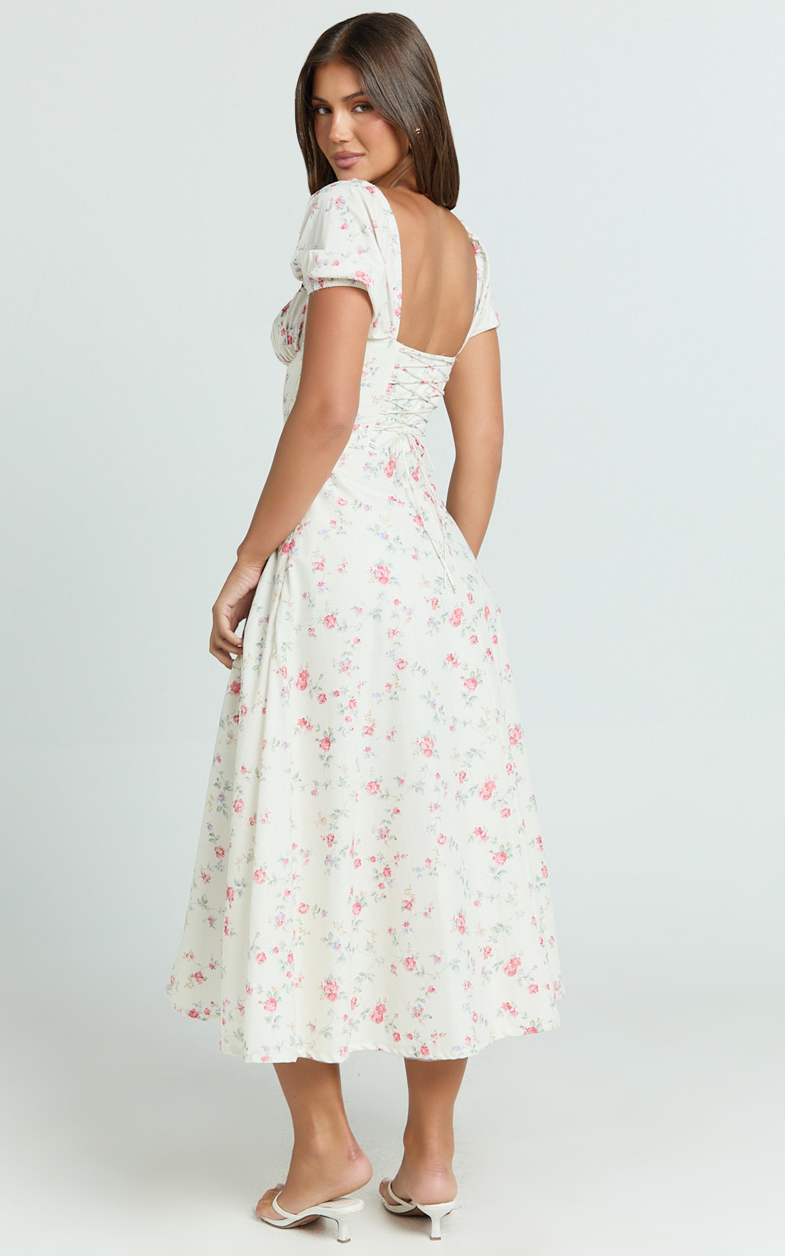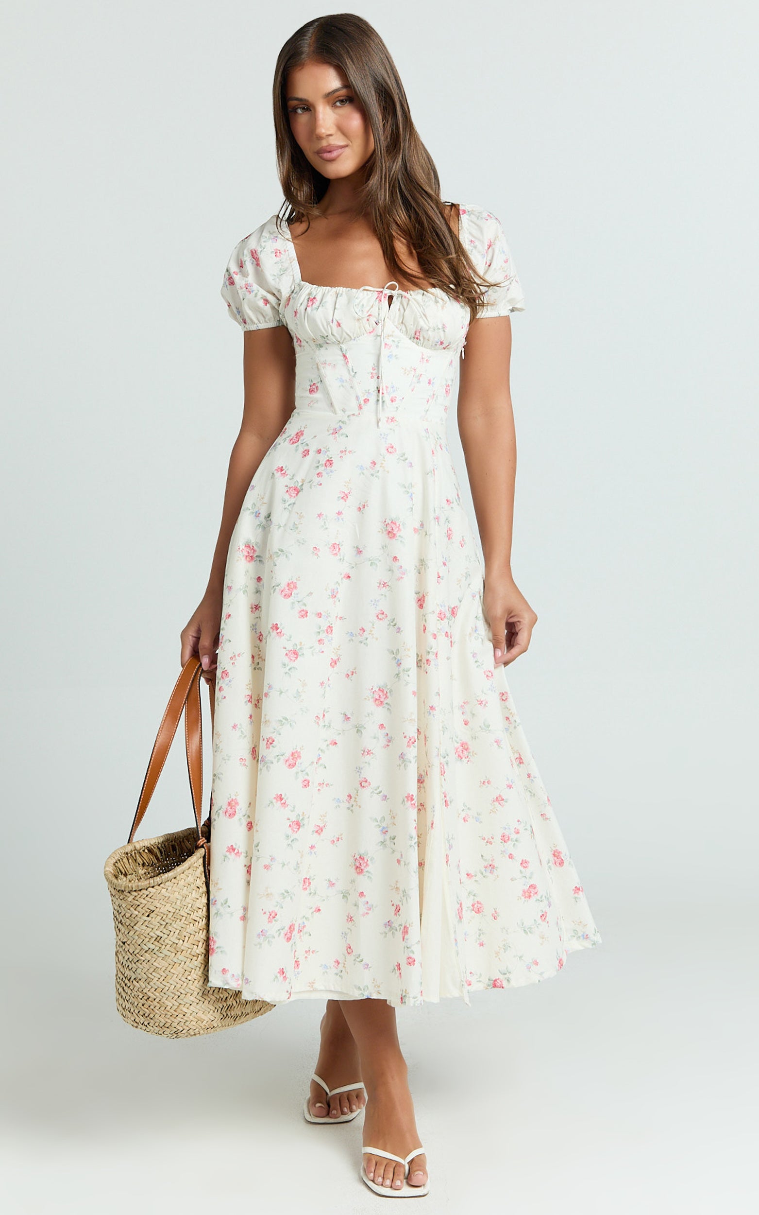 With a square neckline, puff sleeves and a twirl-worthy circle skirt, this midi nails high-low dressing with a silhouette that’s equally sweet and statement. Effortless to slip on and made for movement, it flatters the waist and skims the hips, perfect for daylight dates, garden parties, and everything in between.