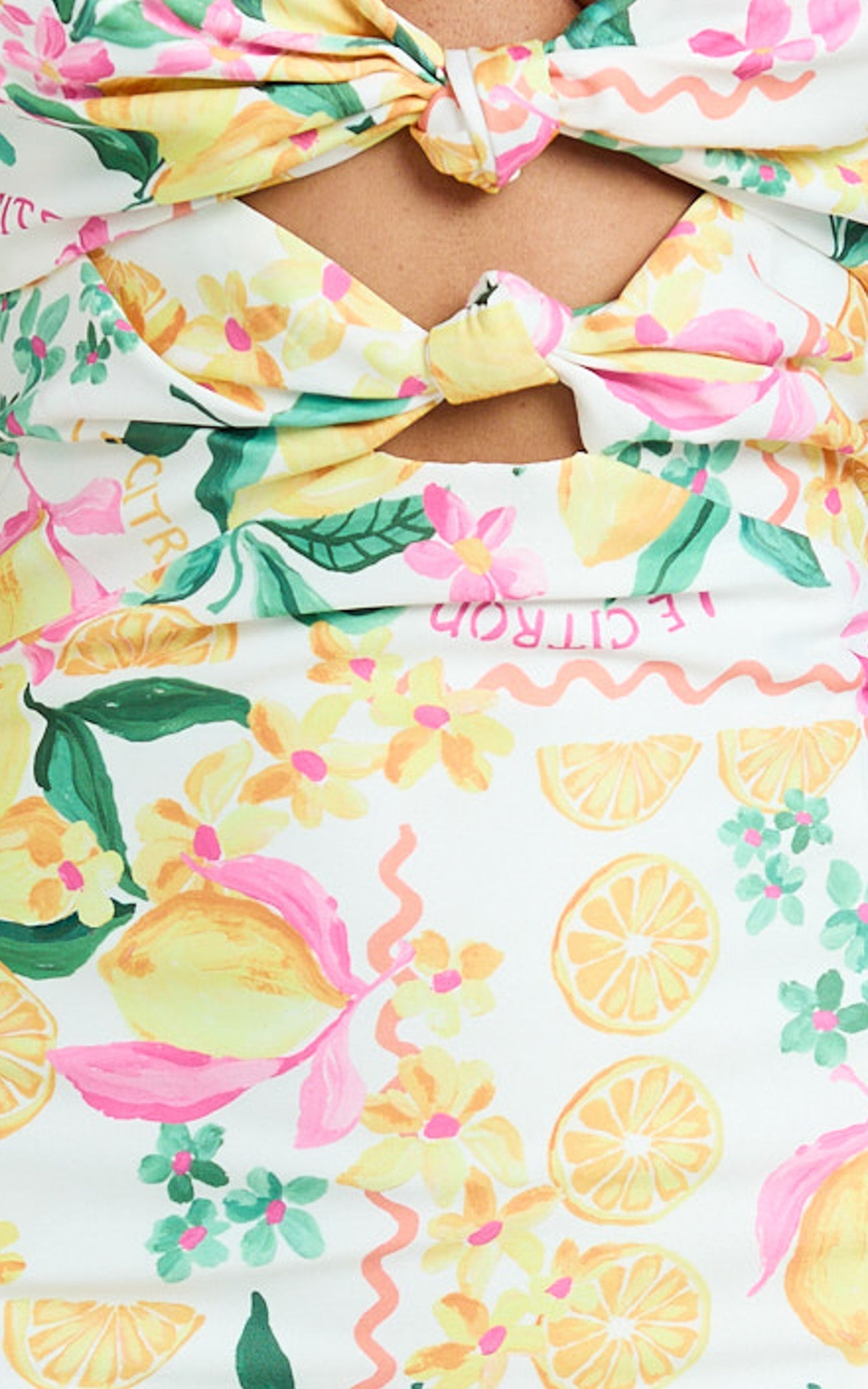 Featuring a flirty knot detail at the bust and a front split that moves with you, it nails that Quiet luxury vibe while still bringing a touch of Maximalism to your Dresses lineup. The Le Citron print pops for brunch, date night, and everything in between.