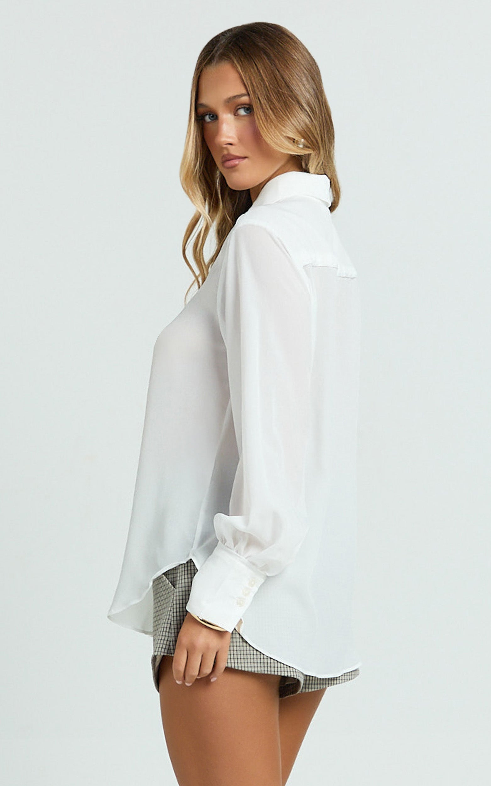 Effortlessly elevate your wardrobe with the Jazmin Top – Button Down Shirt Top in Off White. This chic long sleeve blouse features a classic collar and a flattering standard fit, making it the perfect staple for workwear or your next brunch. Cut from a lightweight woven polyester, it keeps you cool and comfortable all day long while offering endless styling possibilities. Pair the Jazmin Top with tailored pants for a sleek office look or dress it down with jeans for casual cool vibes. Timeless, versatile, and totally on trend – this is the must-have white shirt your closet’s been waiting for!
